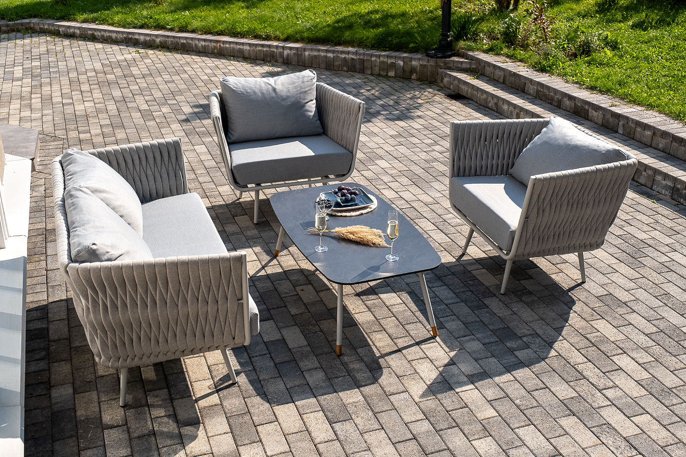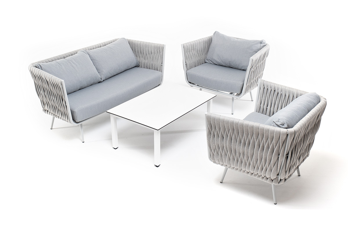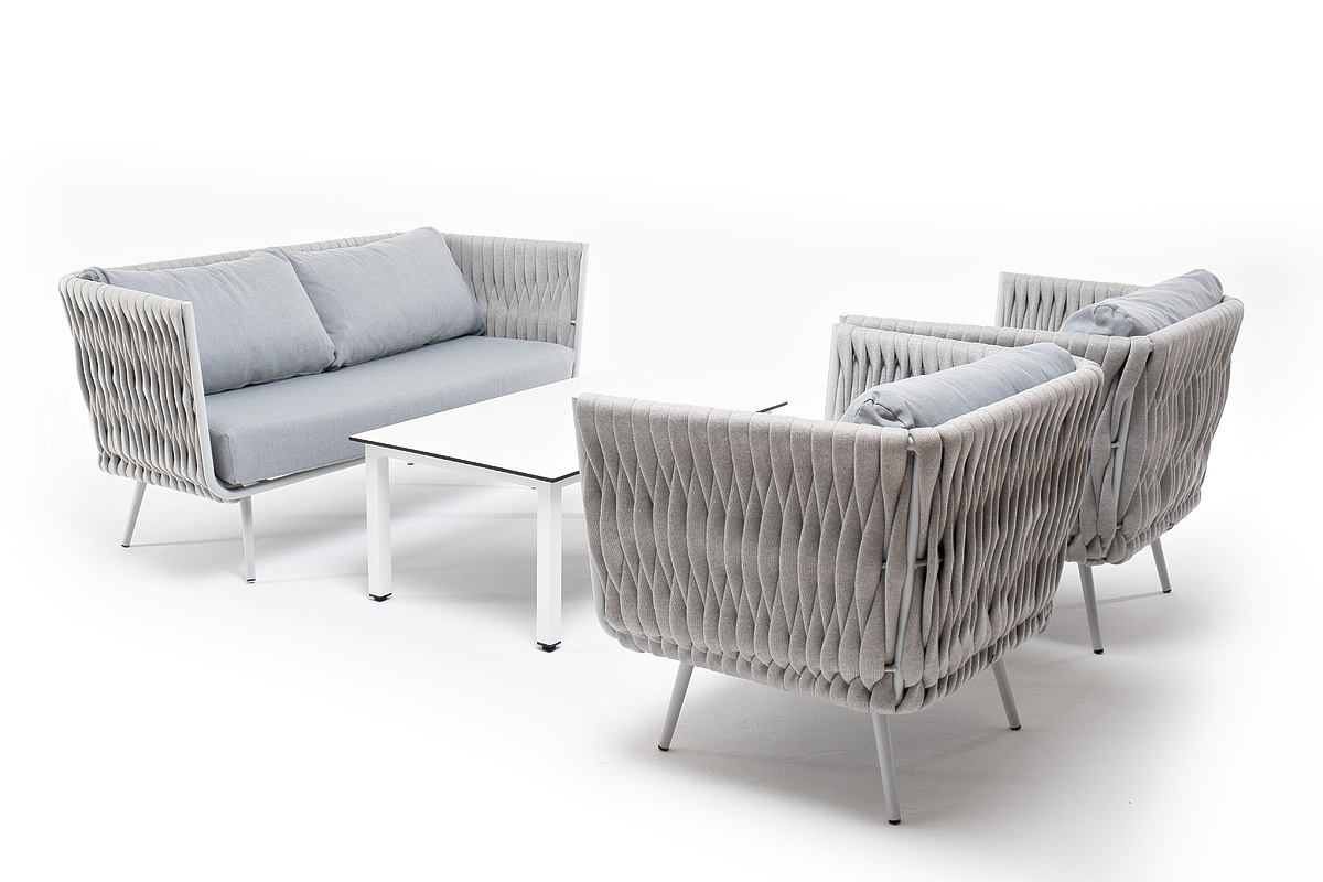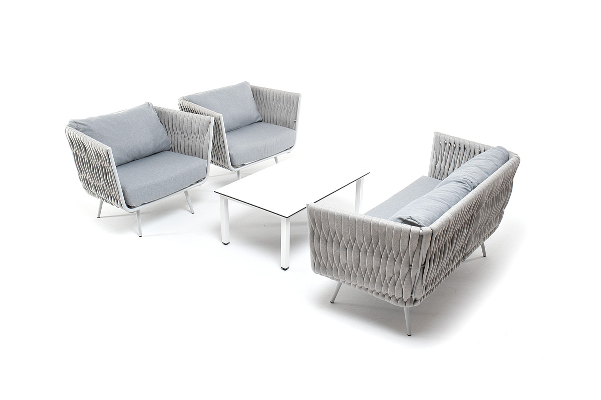 "Монако" лаунж-зона 4-местная из роупа со столом "Верона" (серый гранит), каркас светло-серый, роуп светло-серый