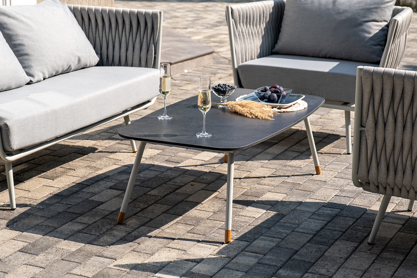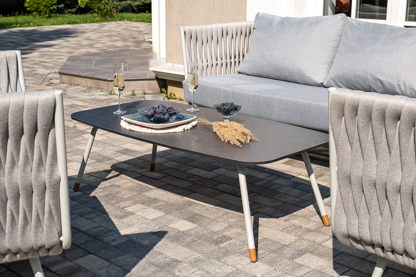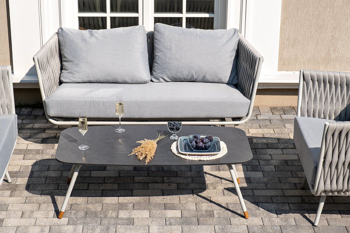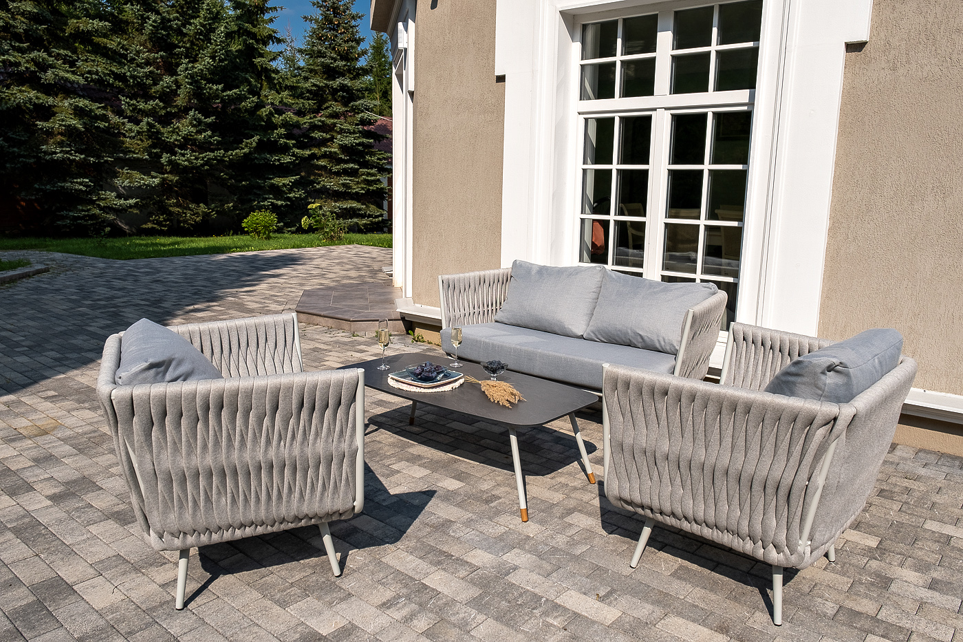 "Монако" лаунж-зона 4-местная из роупа со столом "Верона" (серый гранит), каркас светло-серый, роуп светло-серый