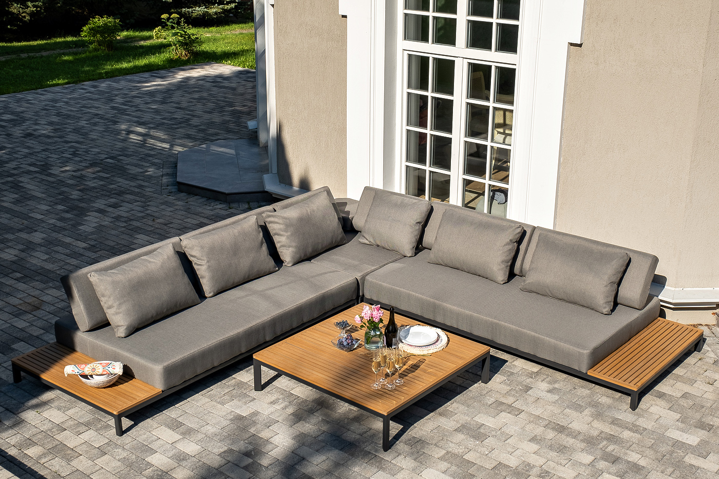 Данна "Амальфи" журнальный столик из тика, 110x110, H26, каркас из алюминия 1шт. 1 100Х1 100Х260, "Амальфи" модуль диванный левый, каркас из алюминия 1шт. 2 240Х1 100Х460, "Амальфи" модуль диванный правый, каркас из алюминия 1шт. 2 240Х1 100Х460, "Амальфи" модуль диванный угловой, каркас из алюминия 1шт. 1 100Х1 100Х460,