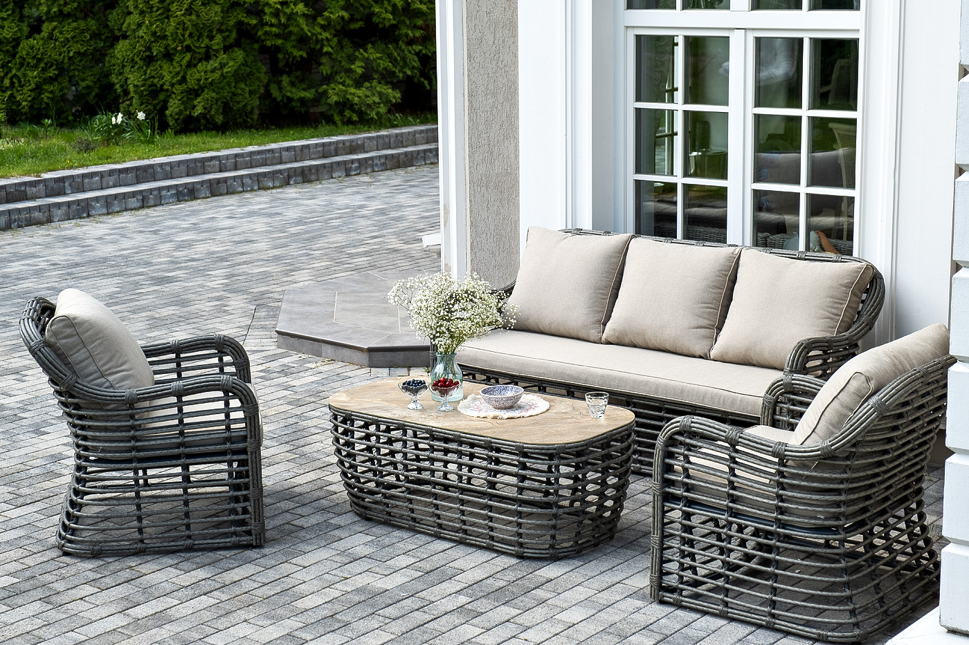 Журнальный столик выполнен из "Ницца" диван из искусственного ротанга трехместный, цвет серый 1шт. 1 810Х850Х870, "Ницца" кресло из искусственного ротанга, цвет серый 2шт. 770Х850Х870, "Ницца" журнальный столик из искусственного ротанга, цвет серый 1шт. 1 200Х600Х450,