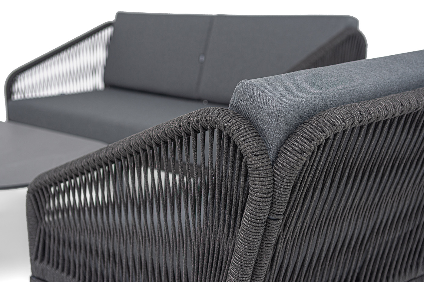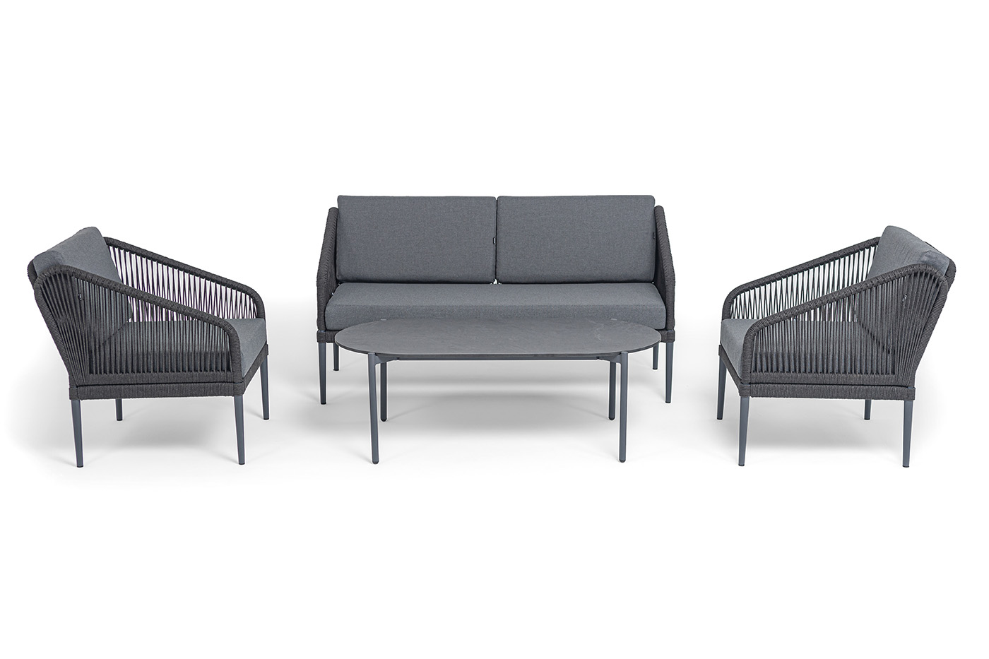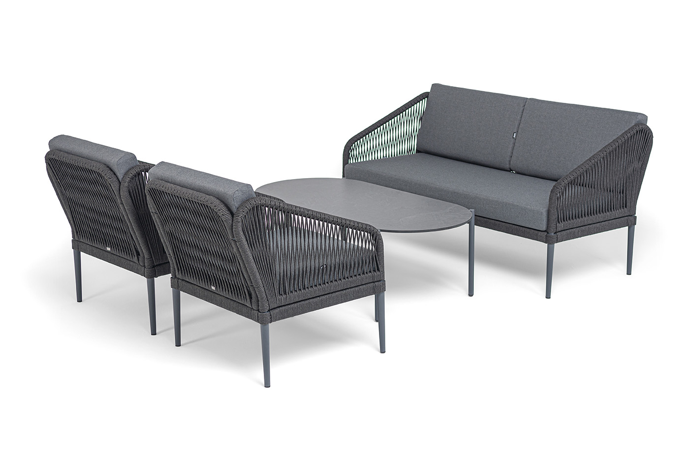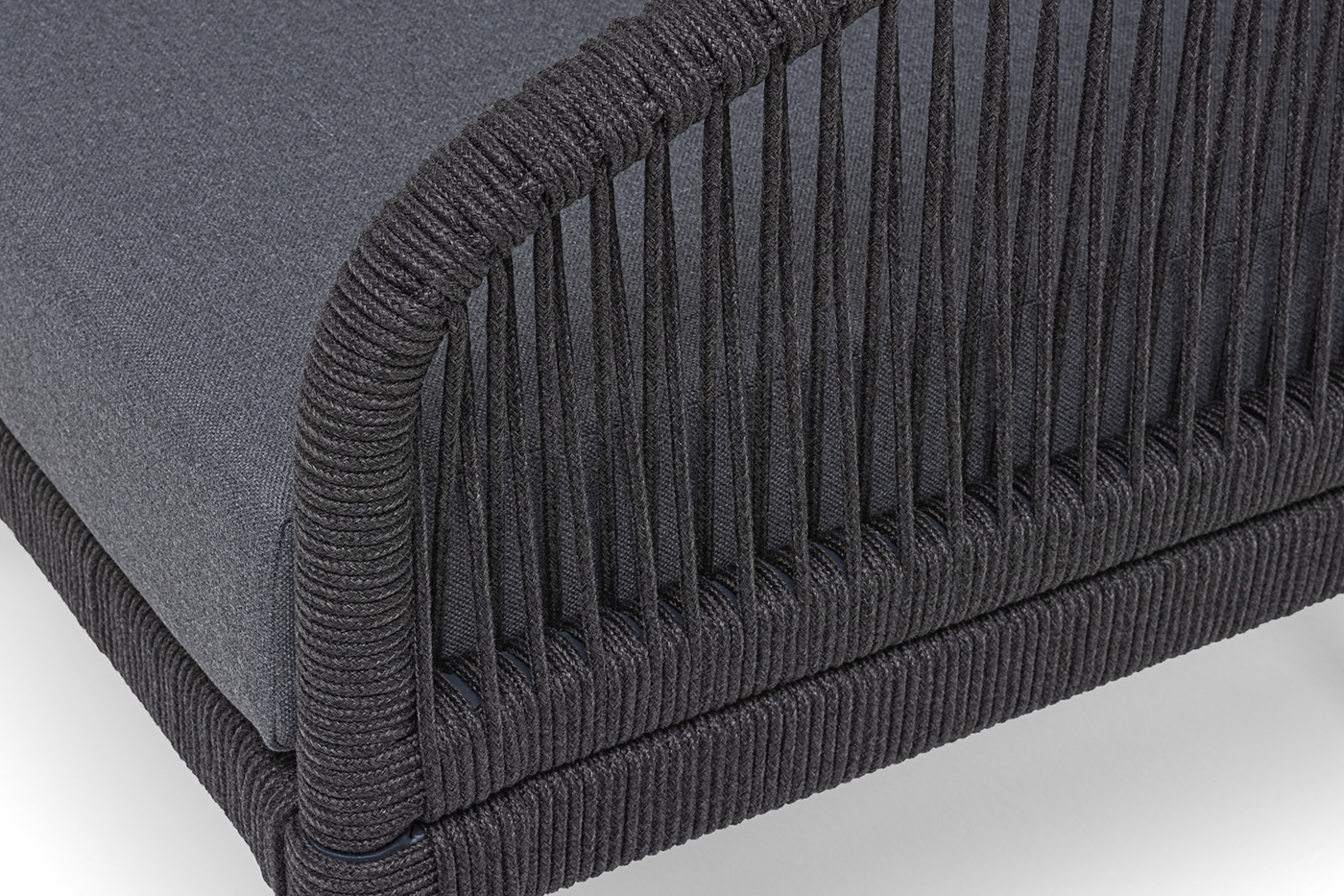 "Канны" лаунж-зона 4-местная из роупа со столиком "Диего" цвета "серый гранит", роуп темно-серый круглый, ткань темно-серая
