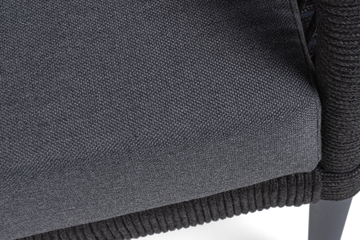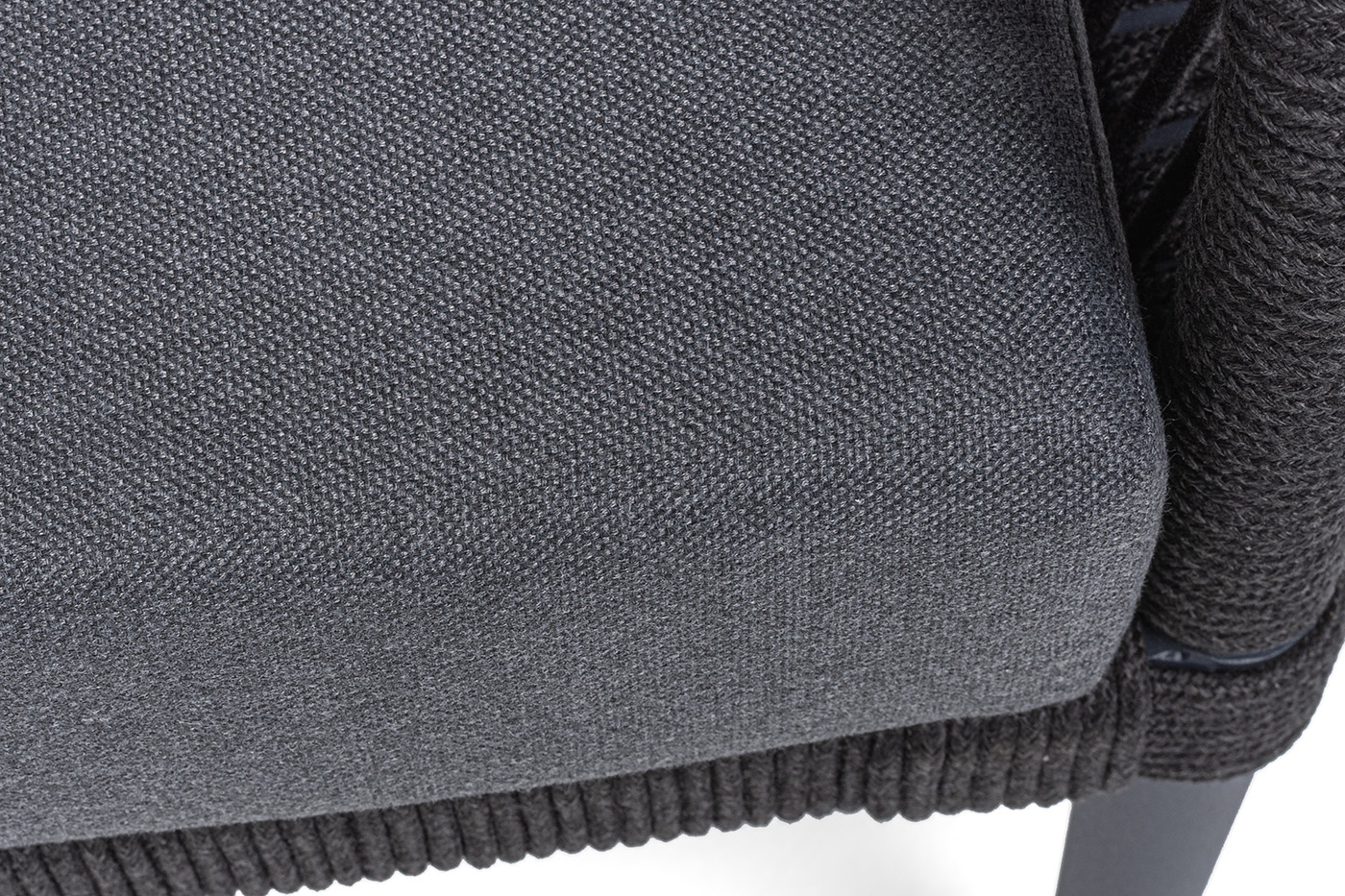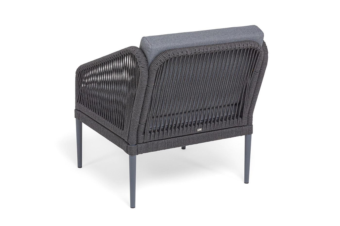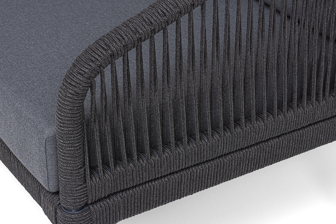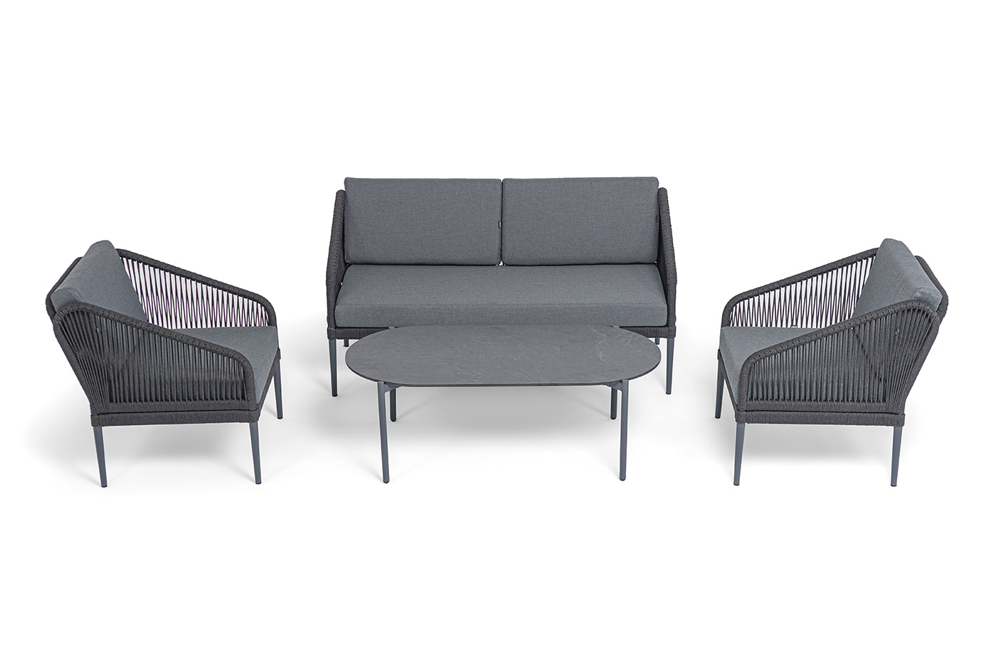 "Канны" лаунж-зона 4-местная из роупа со столиком "Диего" цвета "серый гранит", роуп темно-серый круглый, ткань темно-серая