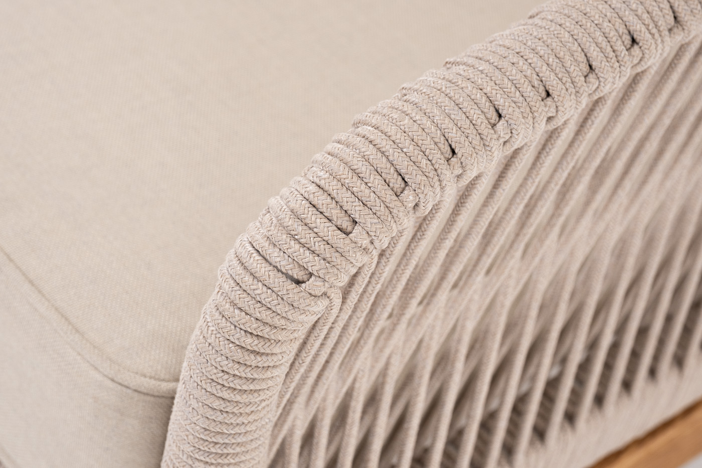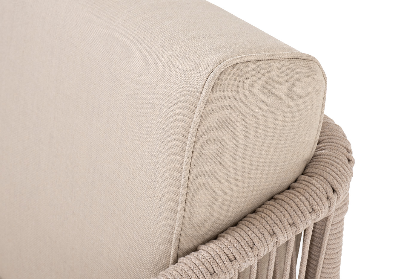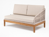 "Канны" левый модуль плетеный из роупа, основание дуб, роуп бежевый круглый, ткань бежевая 052