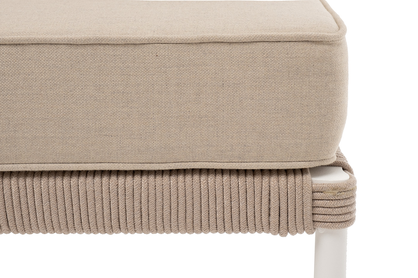 Модуль имеет алюминиевый каркас, окрашенный порошковой краской в белый цвет. Боковины каркаса вручную оплетены роупом - эластичными синтетическими лентами, изготовленными из высокопрочных полиэфирных волокон. Цвет оплетки - бежевый.