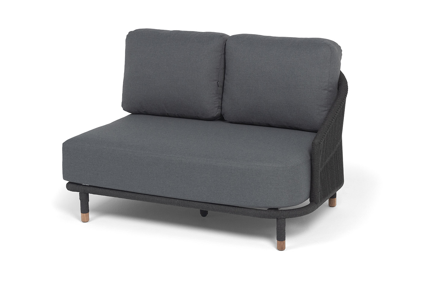 "Верона" левый модуль плетеный из роупа, каркас алюминий темно-серый (RAL7024) муар, роуп темно-серый круглый, ткань темно-серая 027, L131х89