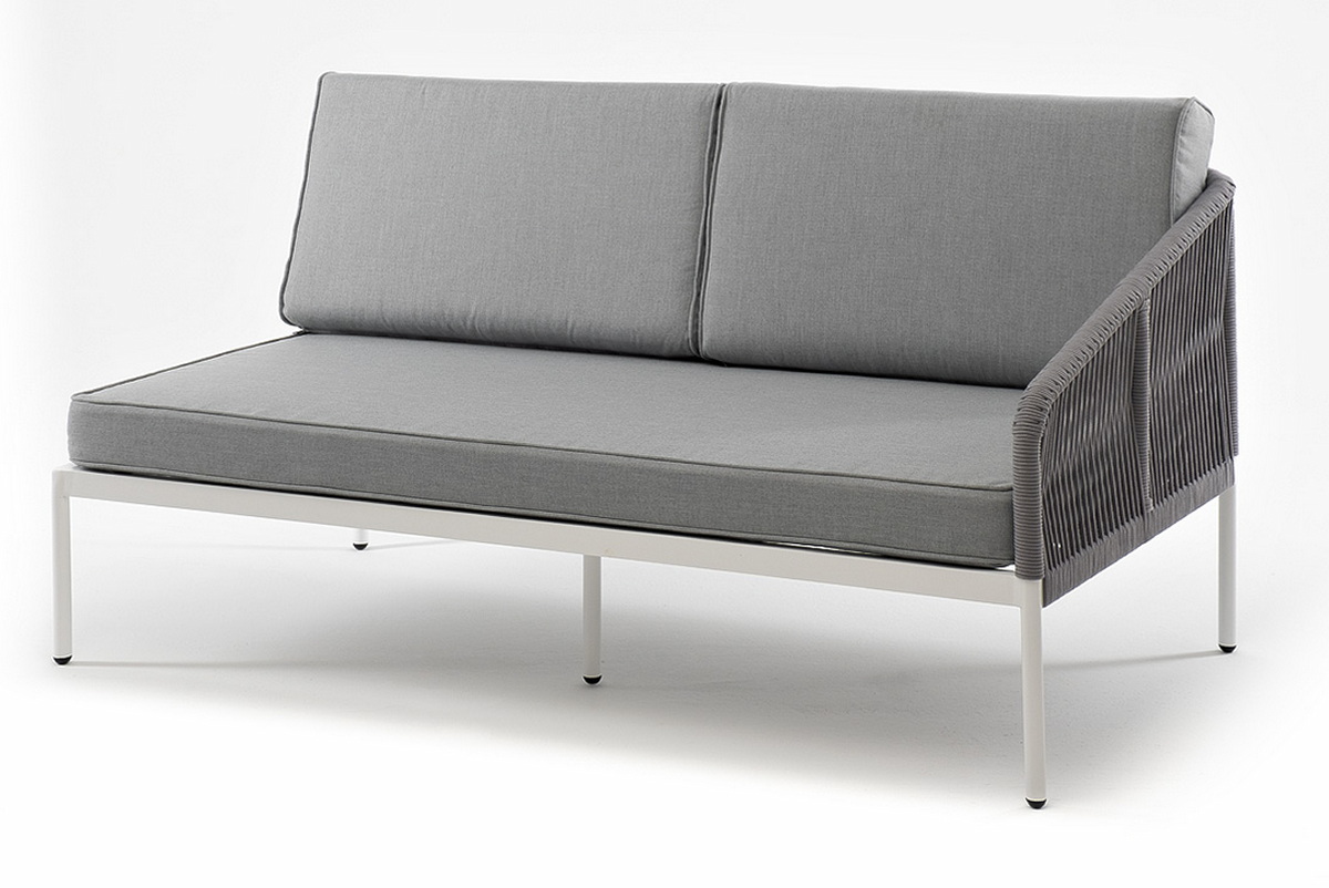 "Канны" левый модуль плетеный из роупа, каркас алюминий белый муар, роуп светло-серый круглый, ткань светло-серая