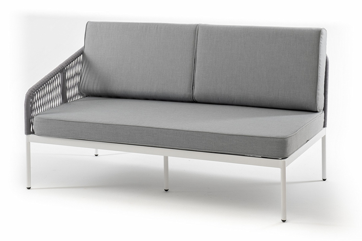 "Канны" правый модуль плетеный из роупа, каркас алюминий белый муар, роуп светло-серый круглый, ткань светло-серая