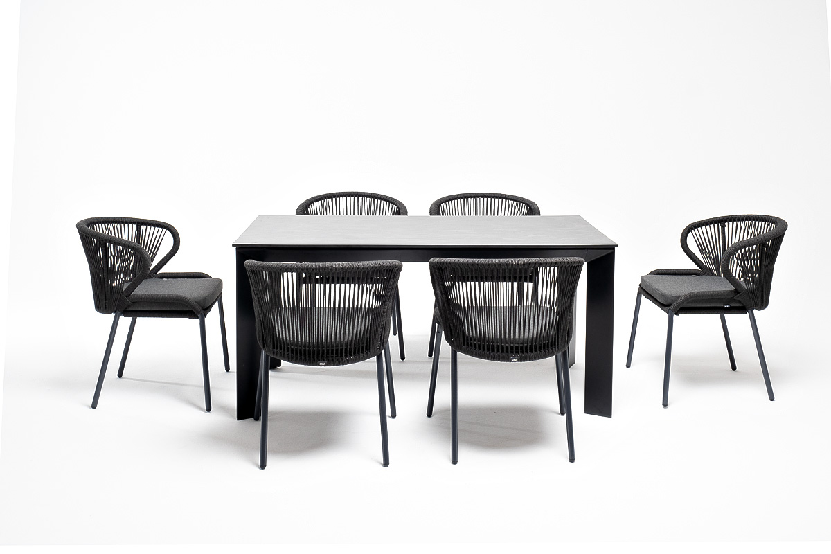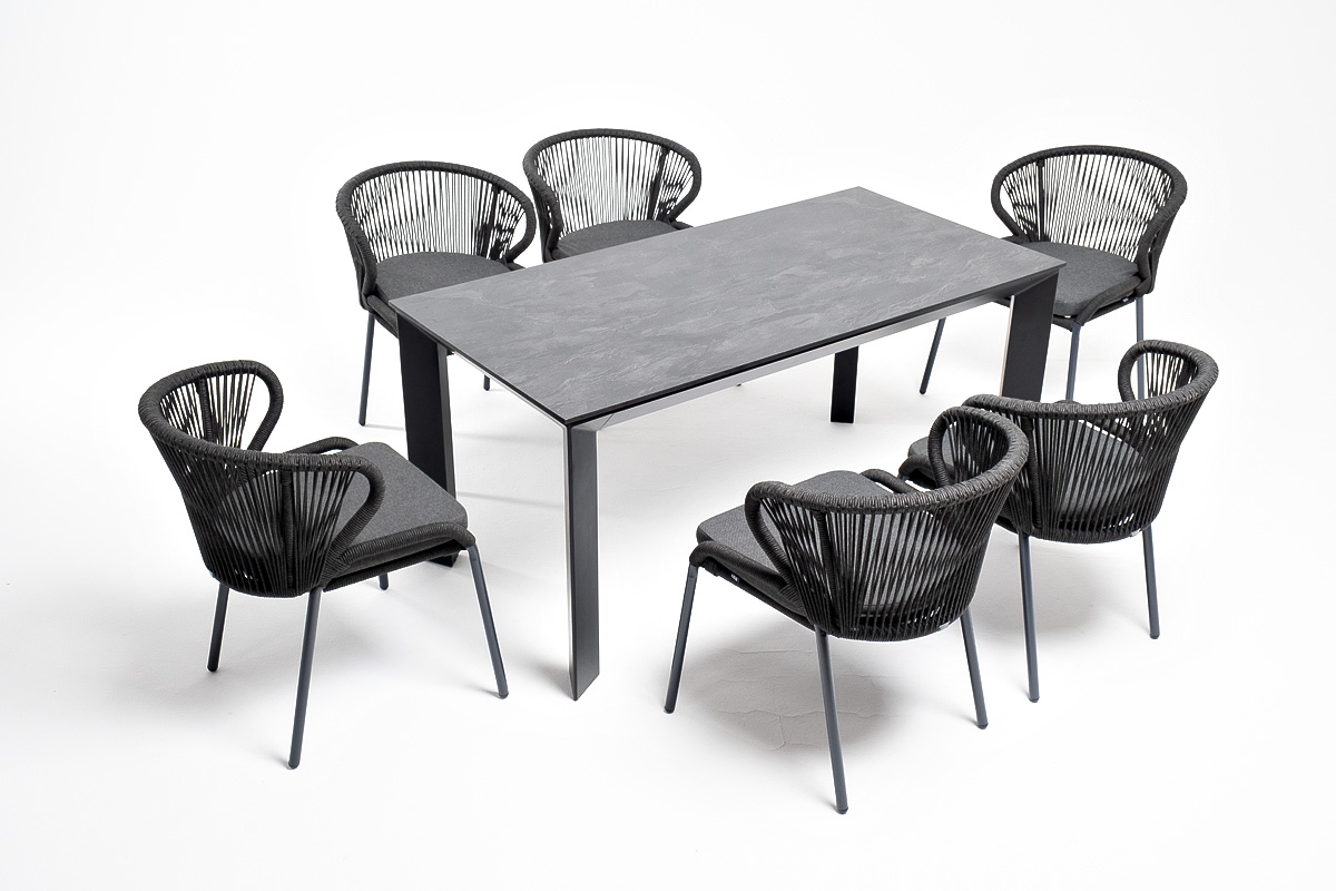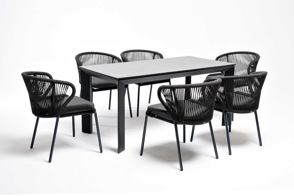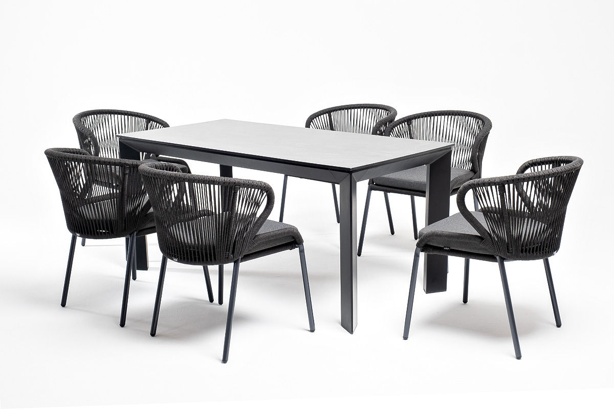 "Венето" обеденная группа на 6 персон со стульями "Милан", каркас темно-серый, роуп темно-серый