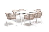 "Малага" обеденная группа на 6 персон со стульями "Марсель", каркас белый, роуп бежевый