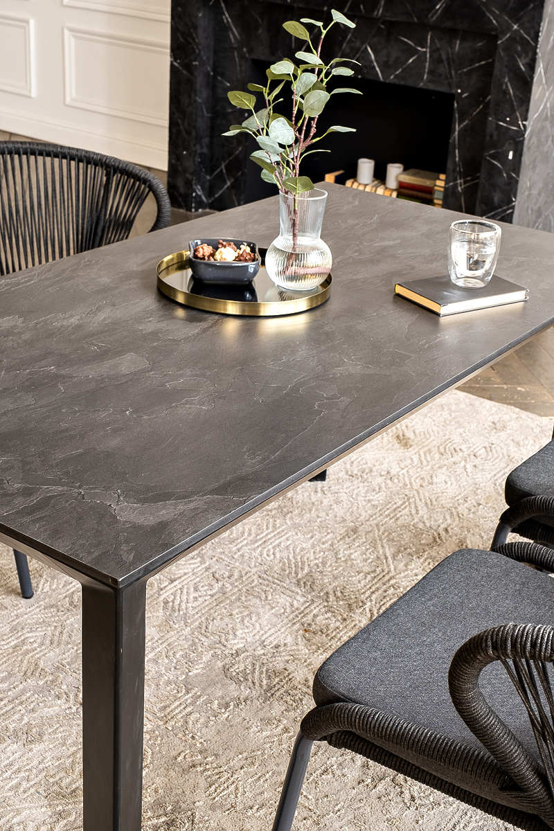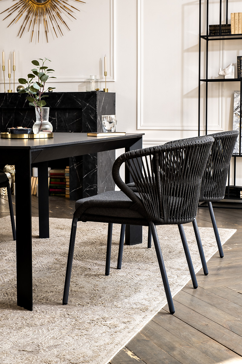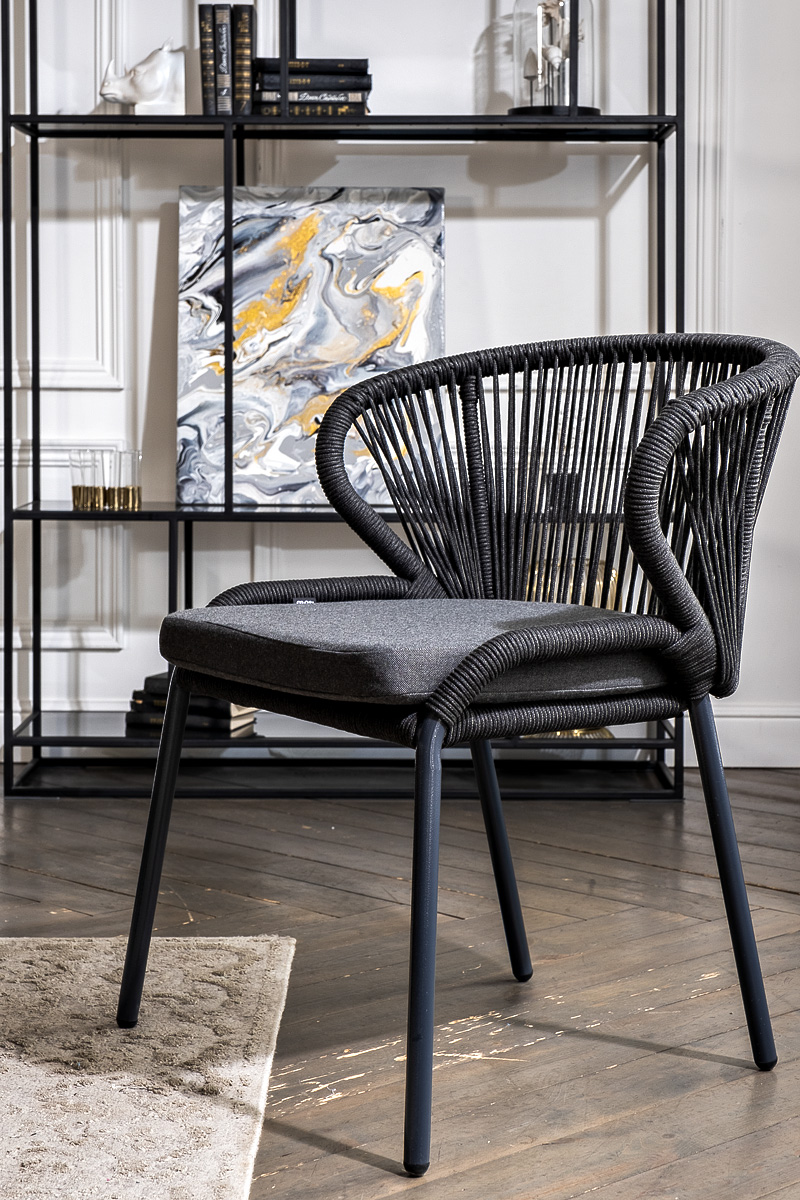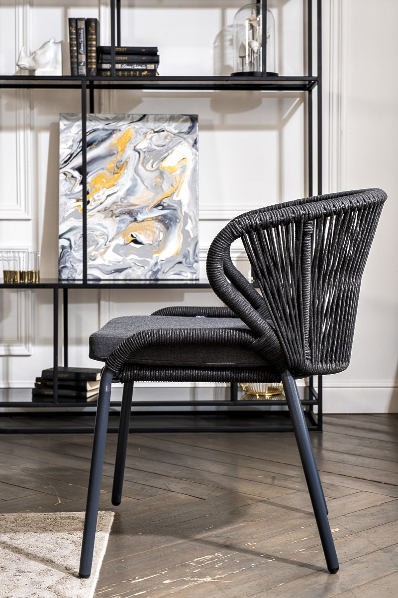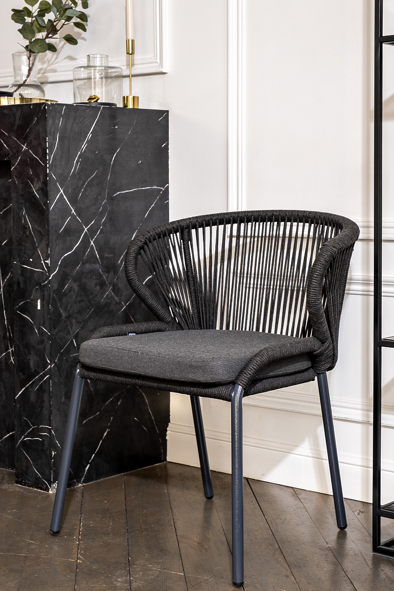 Стулья «Милан» выполнены из роупа темно-серого цвета, который гармонируют с общим дизайном комплекта. Размер каждого стула составляет 570×660×795 мм. Каркас из алюминия придает стульям легкость и прочность, а порошковое окрашивание защищает металл от коррозии и увеличивает срок службы мебели. "Венето" обеденный стол из HPL 160х80см, цвет "серый гранит", каркас черный 1шт. 1 600Х800Х750, "Милан" стул плетеный из роупа, каркас алюминий темно-серый (RAL7024) муар, роуп темно-серый круглый, ткань темно-серая 027 4шт. 600Х660Х795,