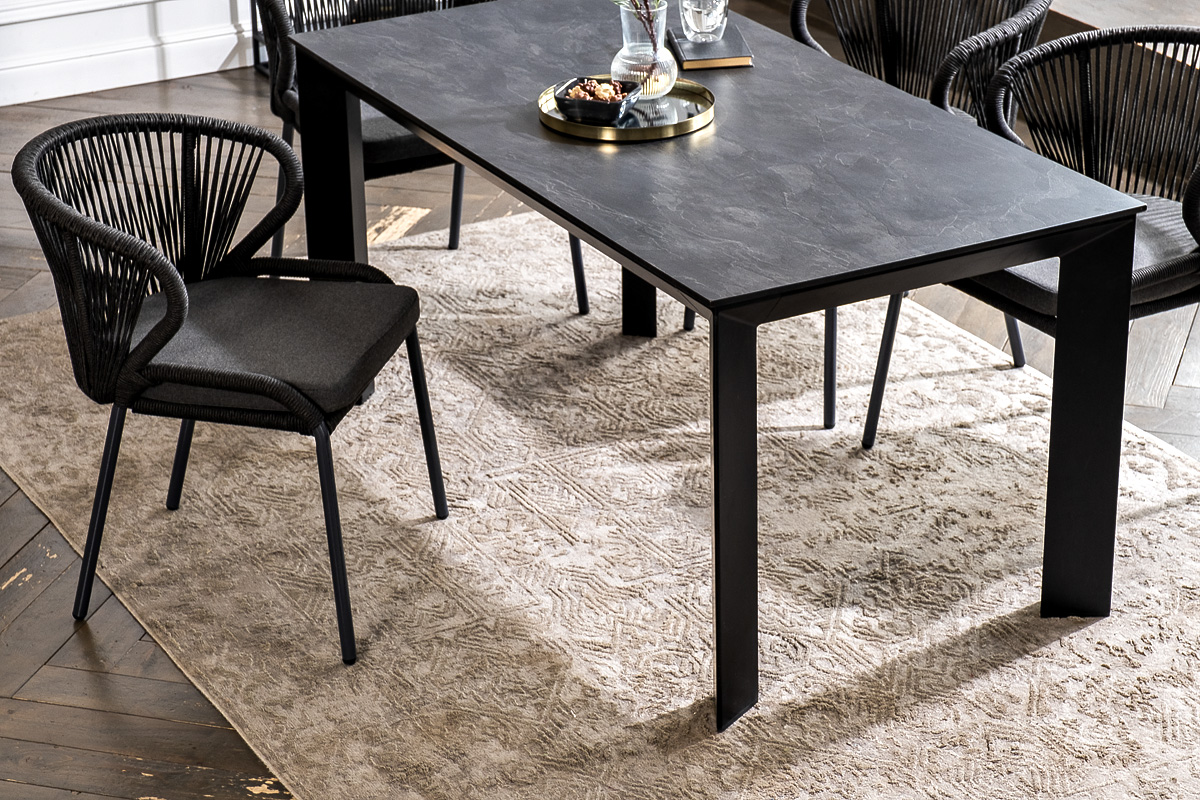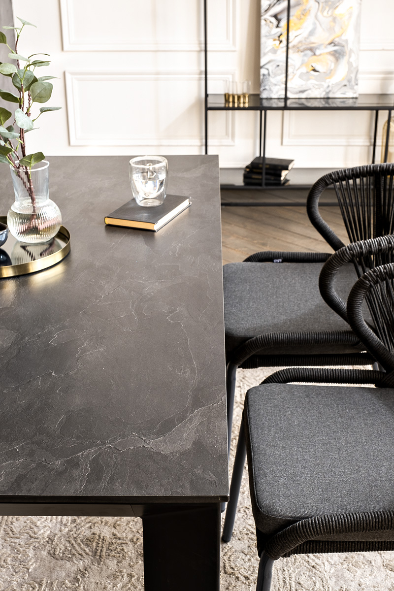 "Венето" обеденная группа на 4 персоны со стульями "Милан", каркас темно-серый, роуп темно-серый