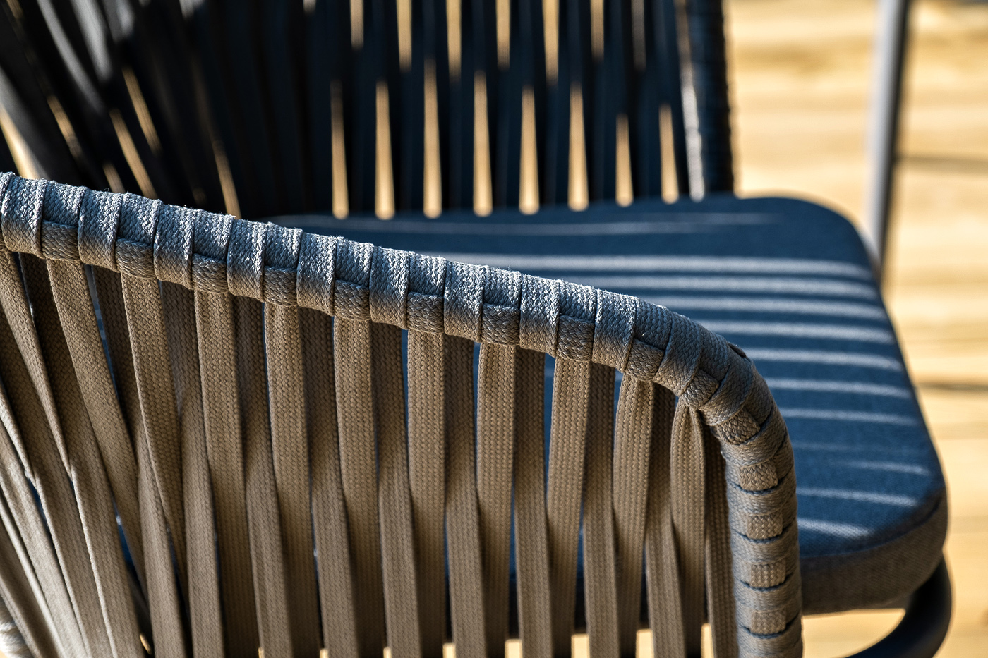 - 4 плетеных стула «Бордо» из плоского роупа, размером - 570×620×775 мм, цвет роупа - серый, каркас - темно-серый (RAL7024). "Бордо" стул плетеный из роупа, каркас алюминий темно-серый (RAL7024) муар, роуп серый 15мм, ткань темно-серая 027 4шт. 570Х620Х775, "Каффе" обеденный стол из HPL 140х70см, цвет "серый гранит", подстолье двойное черное 1шт. 1 400Х700Х750,