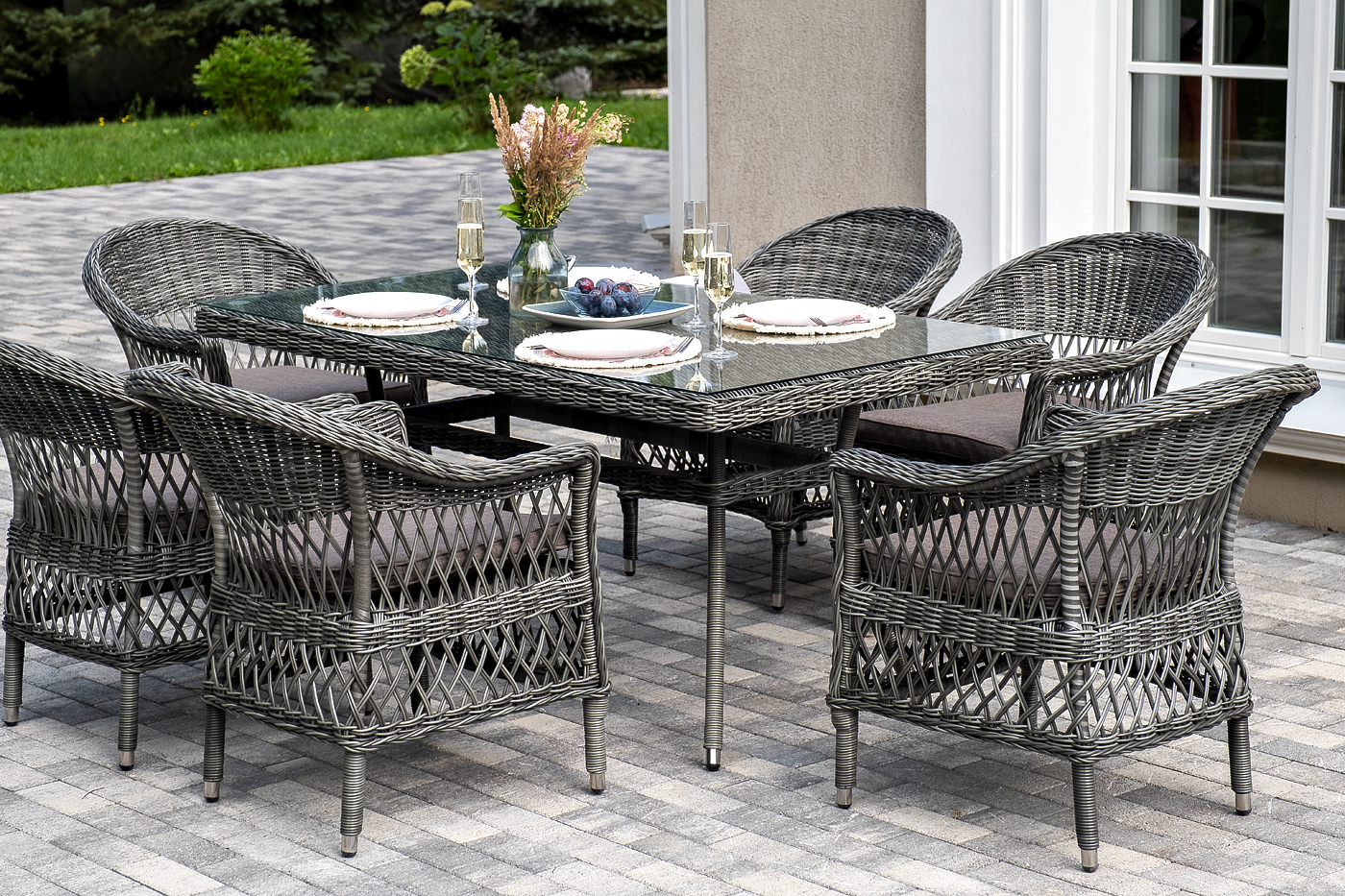 "Романо" обеденная группа на 6 персон, каркас темно-серый, роуп темно-серый