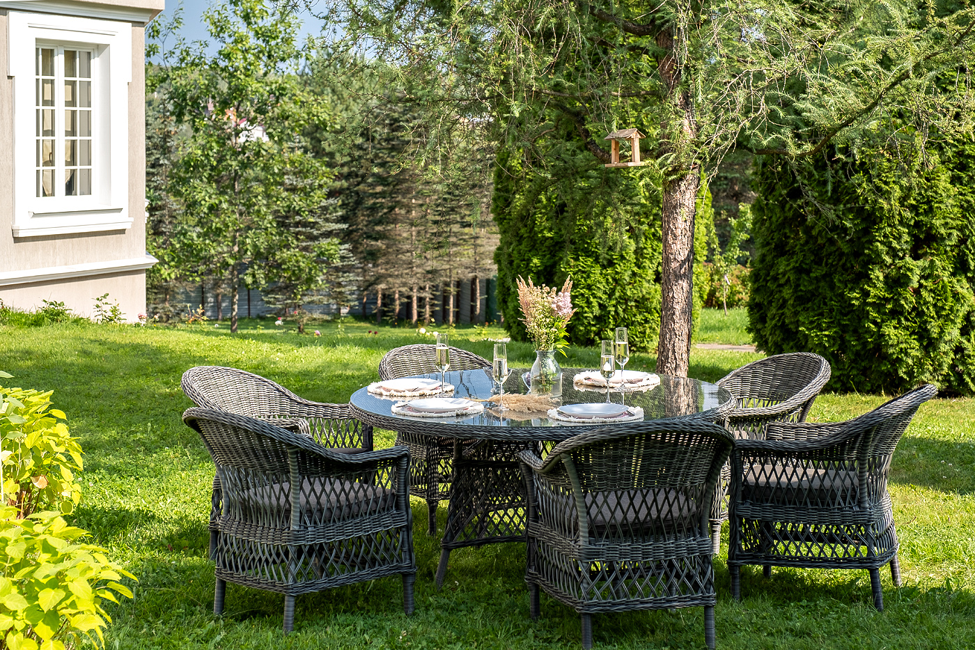"Амароне" обеденная группа из искусственного ротанга на 6 персон, цвет графит