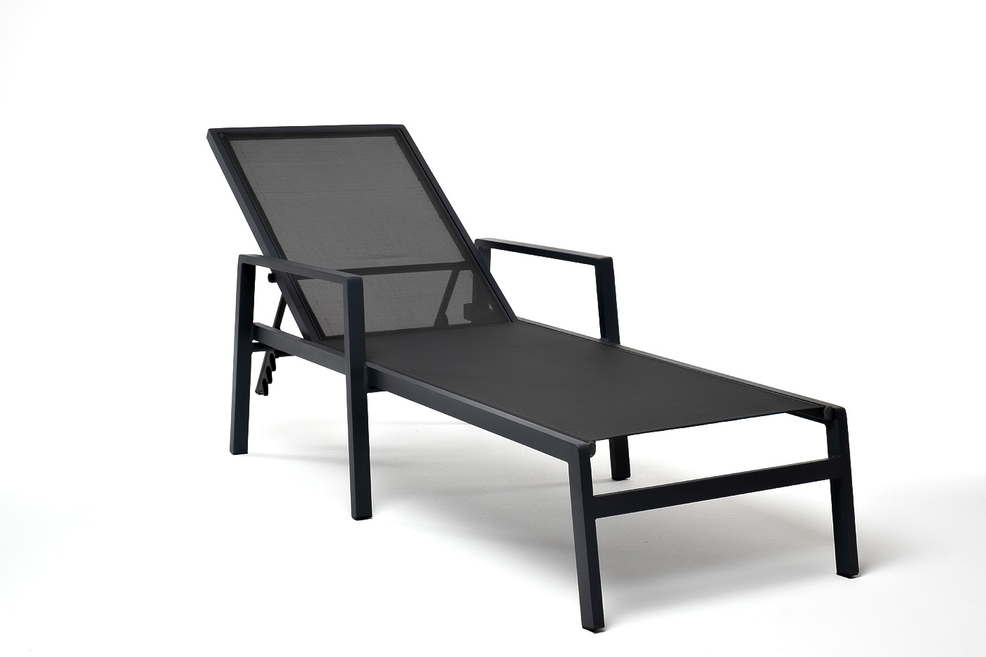 "Парма" шезлонг, каркас алюминий светло-серый (RAL7035) муар, ткань текстилен темно-серая