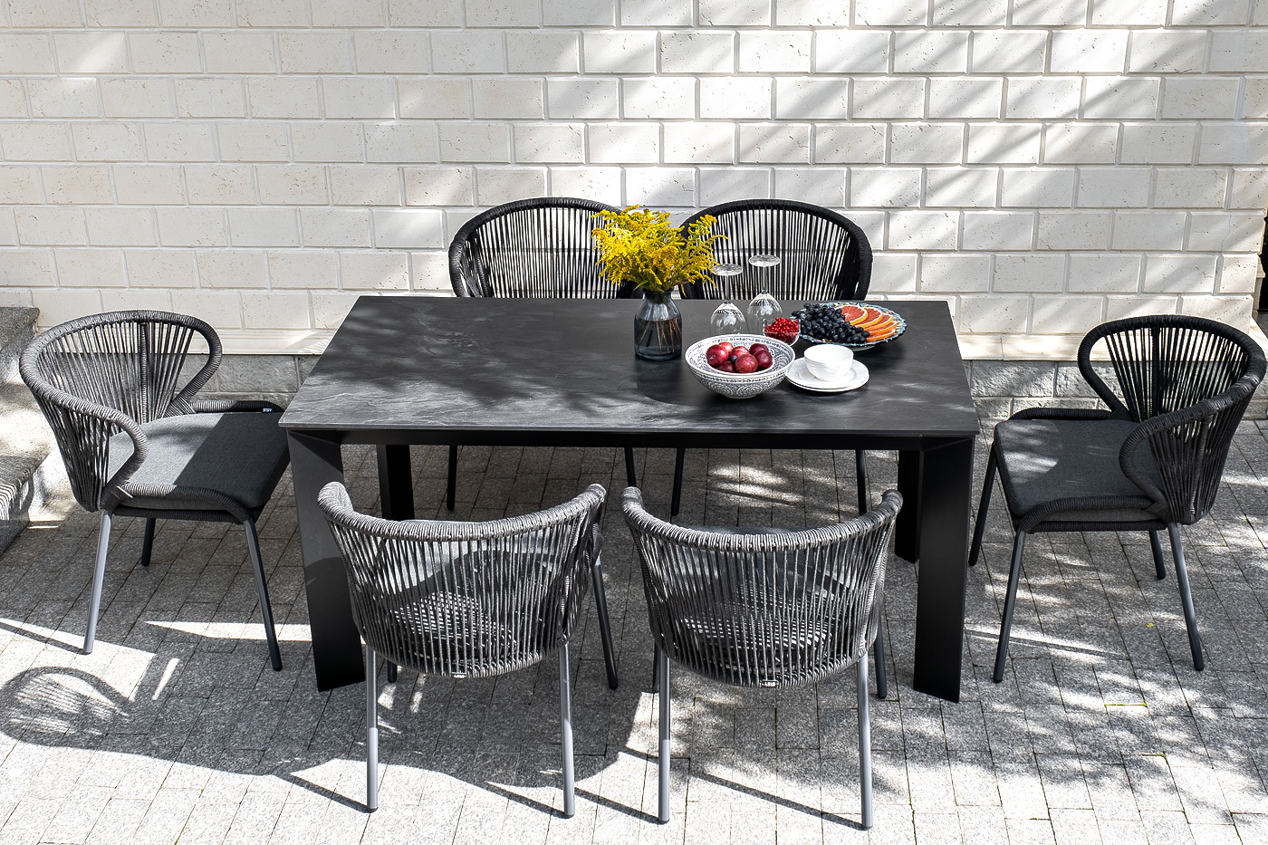 "Малага" обеденный стол из HPL 160х80см, цвет "серый гранит", каркас черный