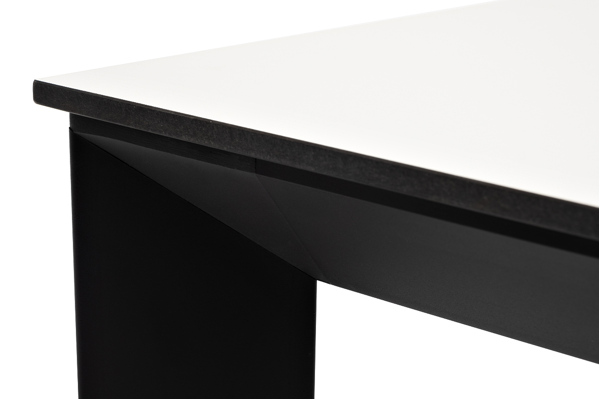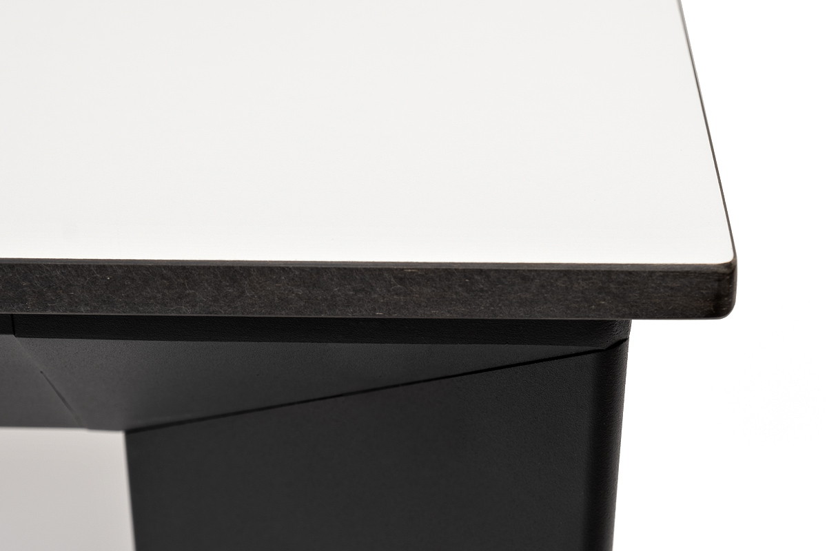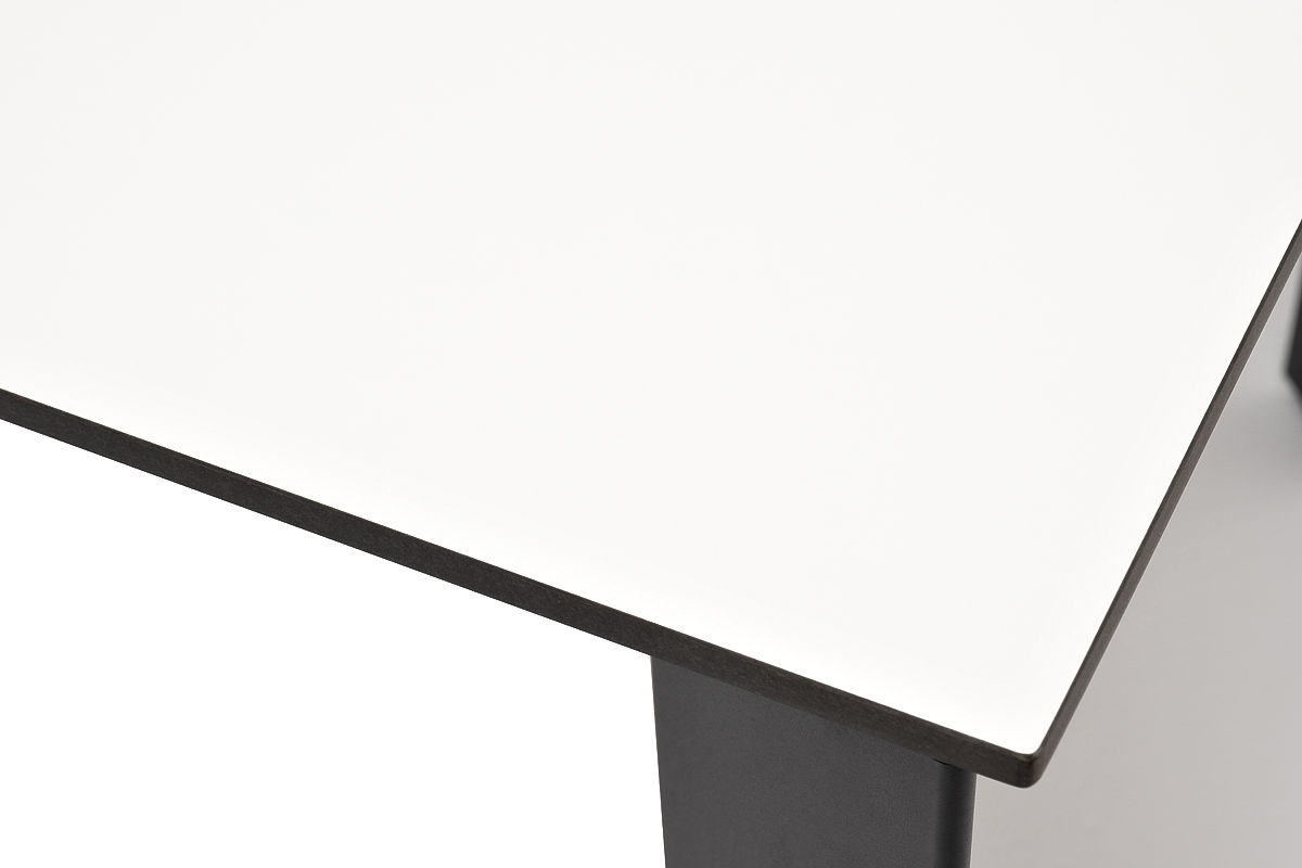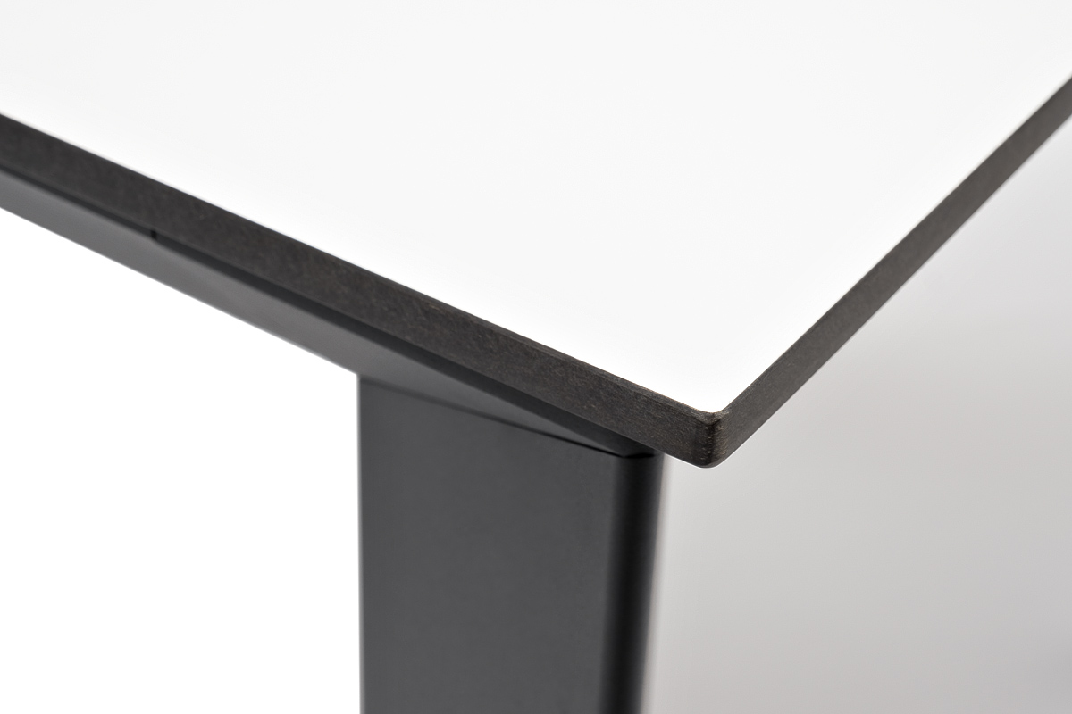 Столешница выполнена из современного высококачественного монолитного компакт-пластик HPL, толщиной 12 мм в цвете молочный. Материал устойчив к высоким температурам, попаданию влаги и может использоваться как в помещении, так и на открытом пространстве. Подстолье изготовлено из крашеного алюминия черного цвета.