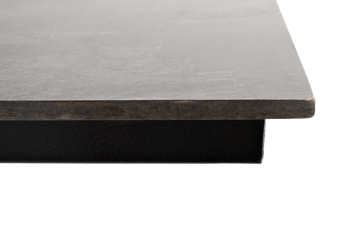 Двойное подстолье изготовлено из металла, столешница - из высококачественного монолитного компакт-пластик HPL, толщиной 12 мм, цвет «серый гранит».