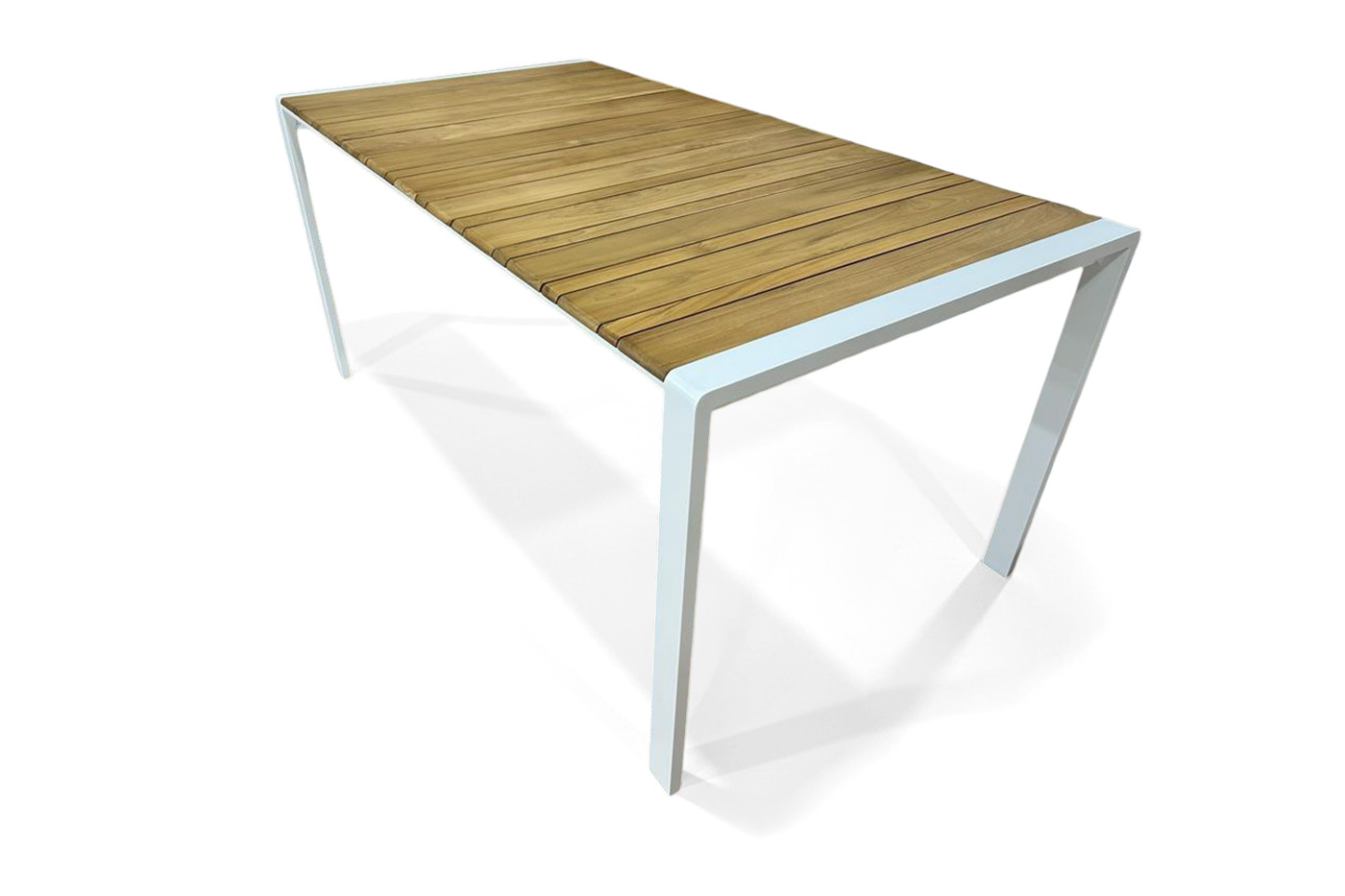 "Альпы" обеденный стол с тиковой столешницей и алюминиевым каркасом