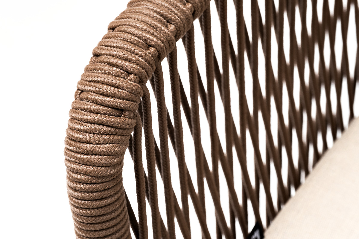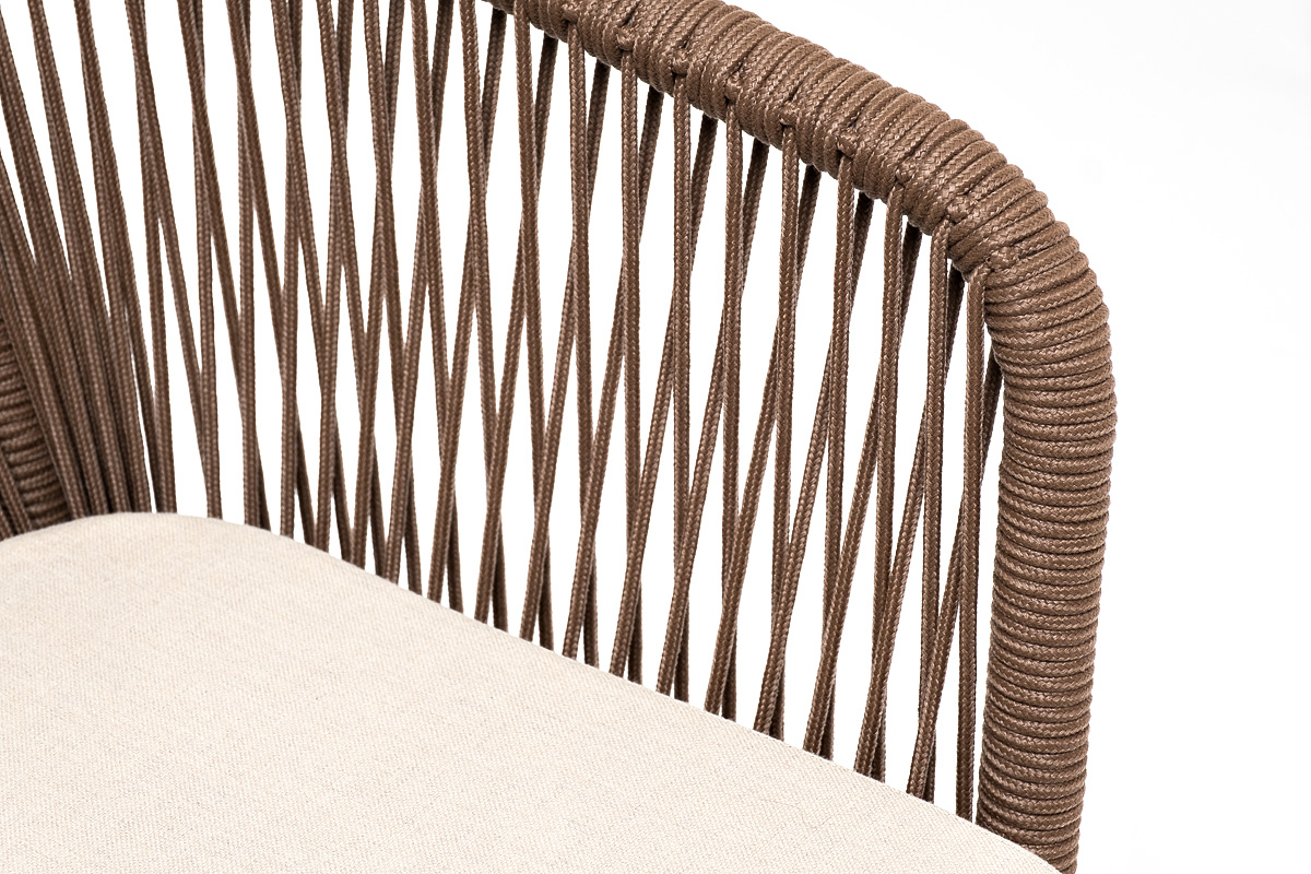 "Марсель" стул плетеный из роупа, каркас алюминий коричневый (RAL8016) муар, роуп коричневый круглый, ткань темно-серая 027