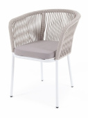 "Милан" стул плетеный из роупа, каркас алюминий белый муар, роуп бежевый круглый, ткань бежевая 15052
