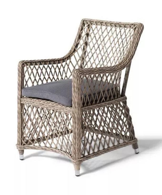 Каркас кресла выполнен из прочного алюминия, который обеспечивает его надежность и долговечность. Внешний вид кресла украшает ручное плетение из круглого искусственного ротанга, создающего приятную и гармоничную атмосферу. Кресло имеет соломенный цвет,