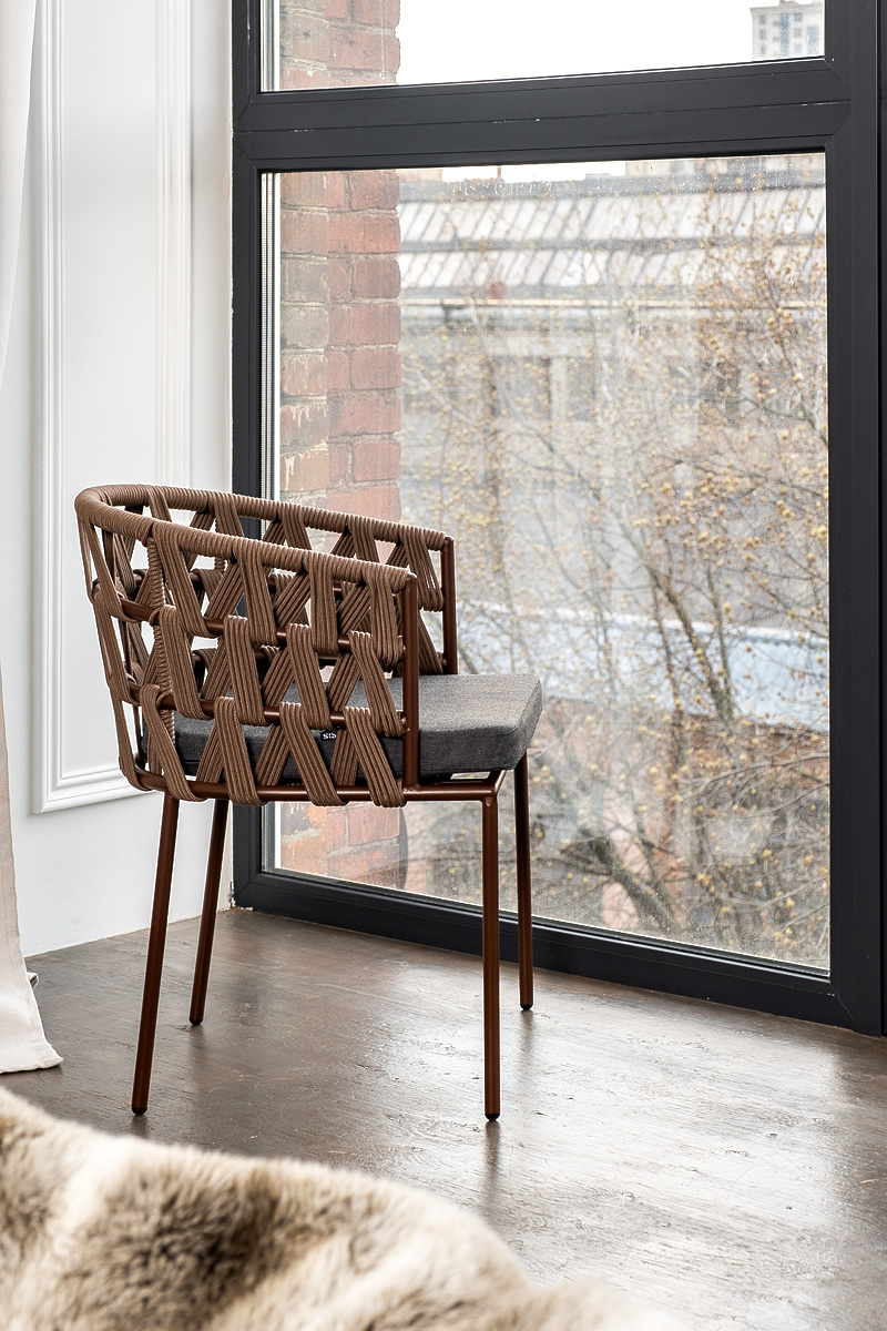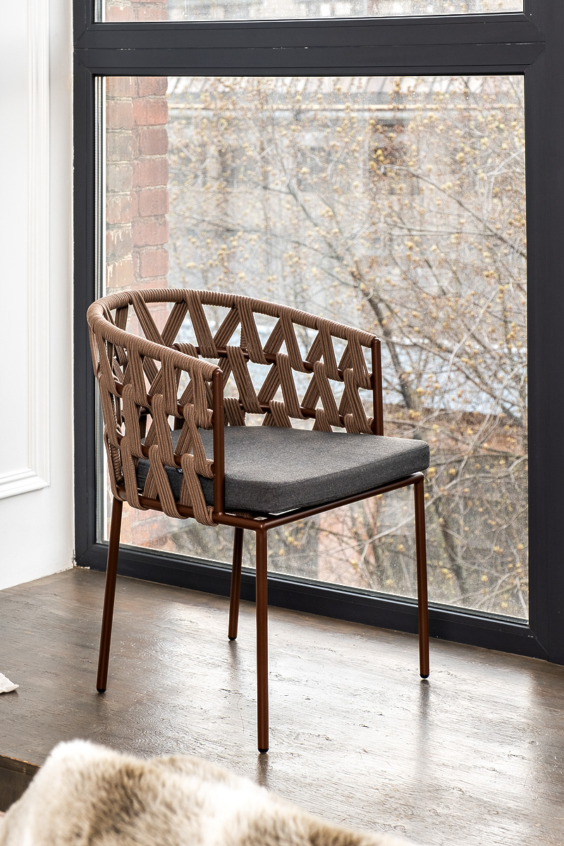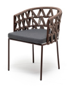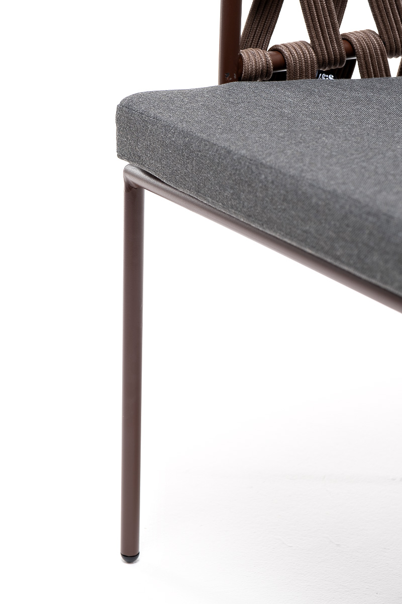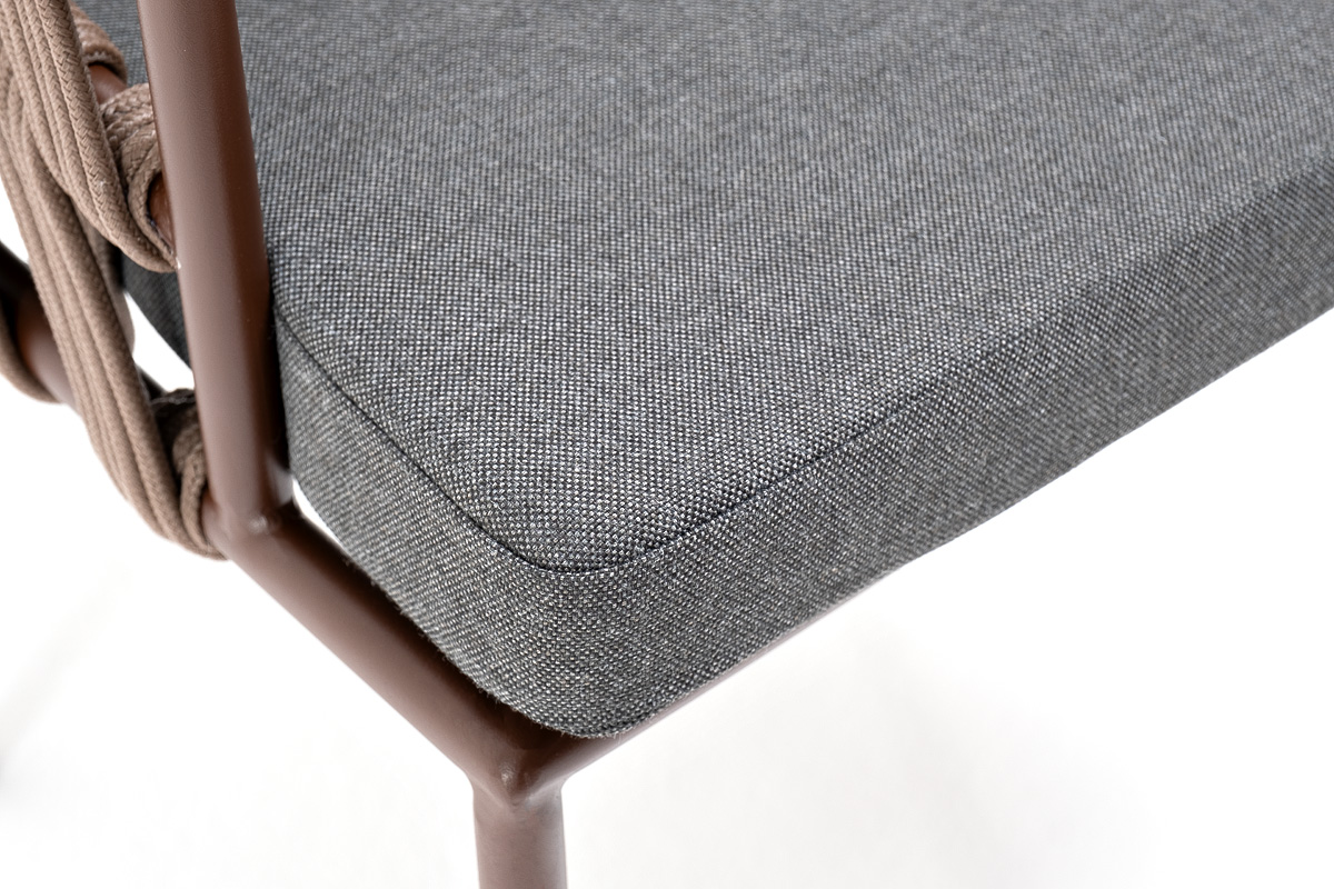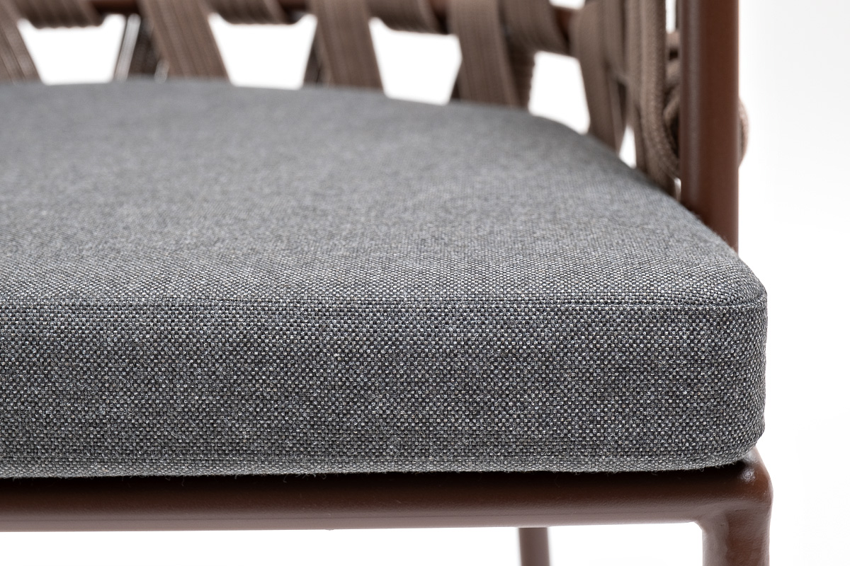 "Диего" стул плетеный из роупа, каркас из стали коричневый (RAL8016) муар, роуп коричневый круглый, ткань серая