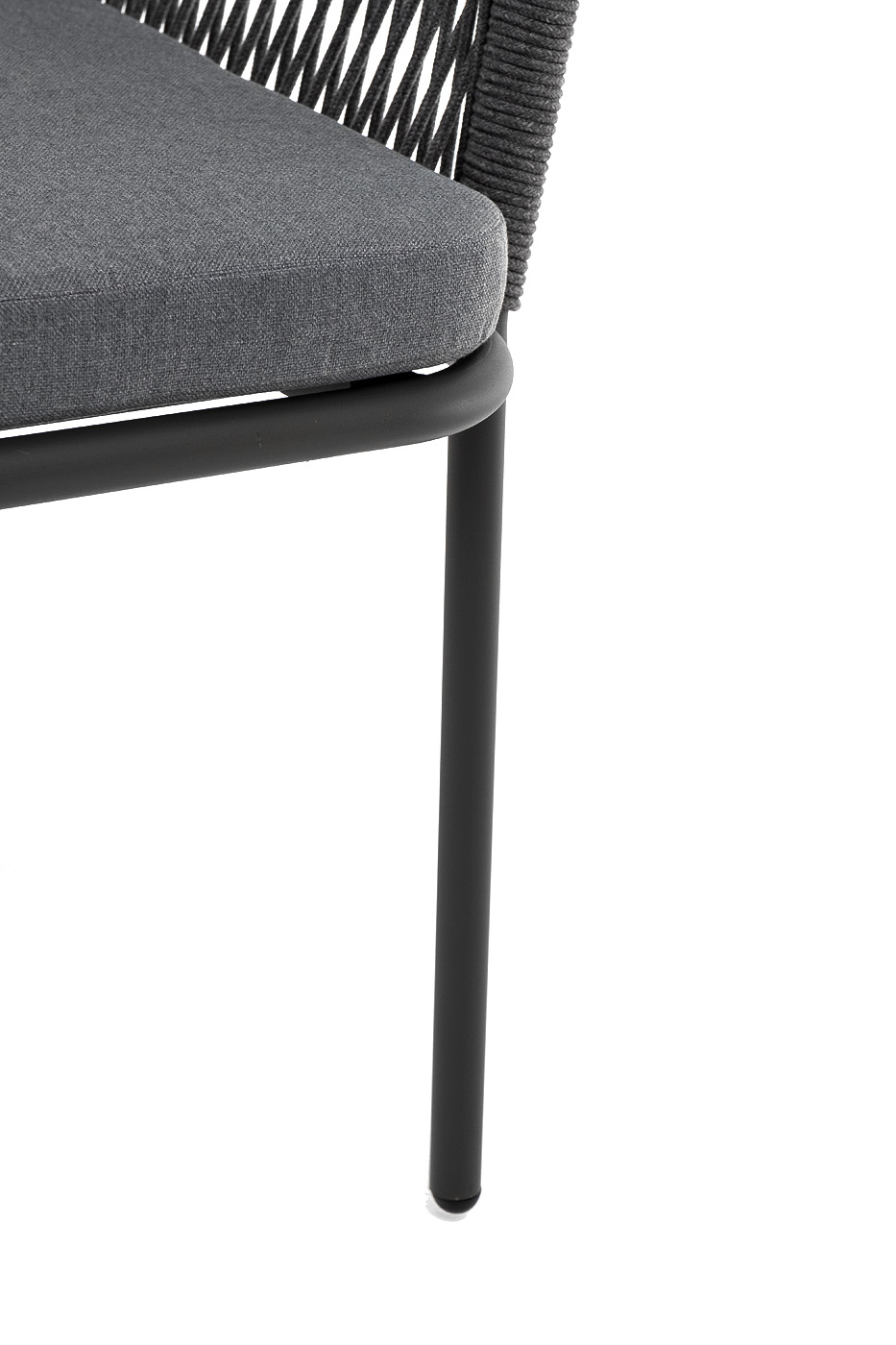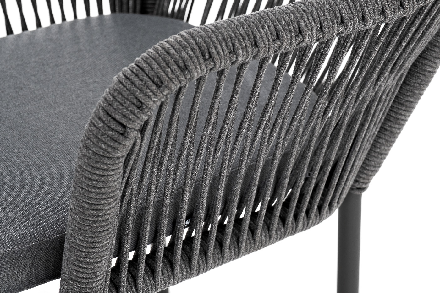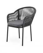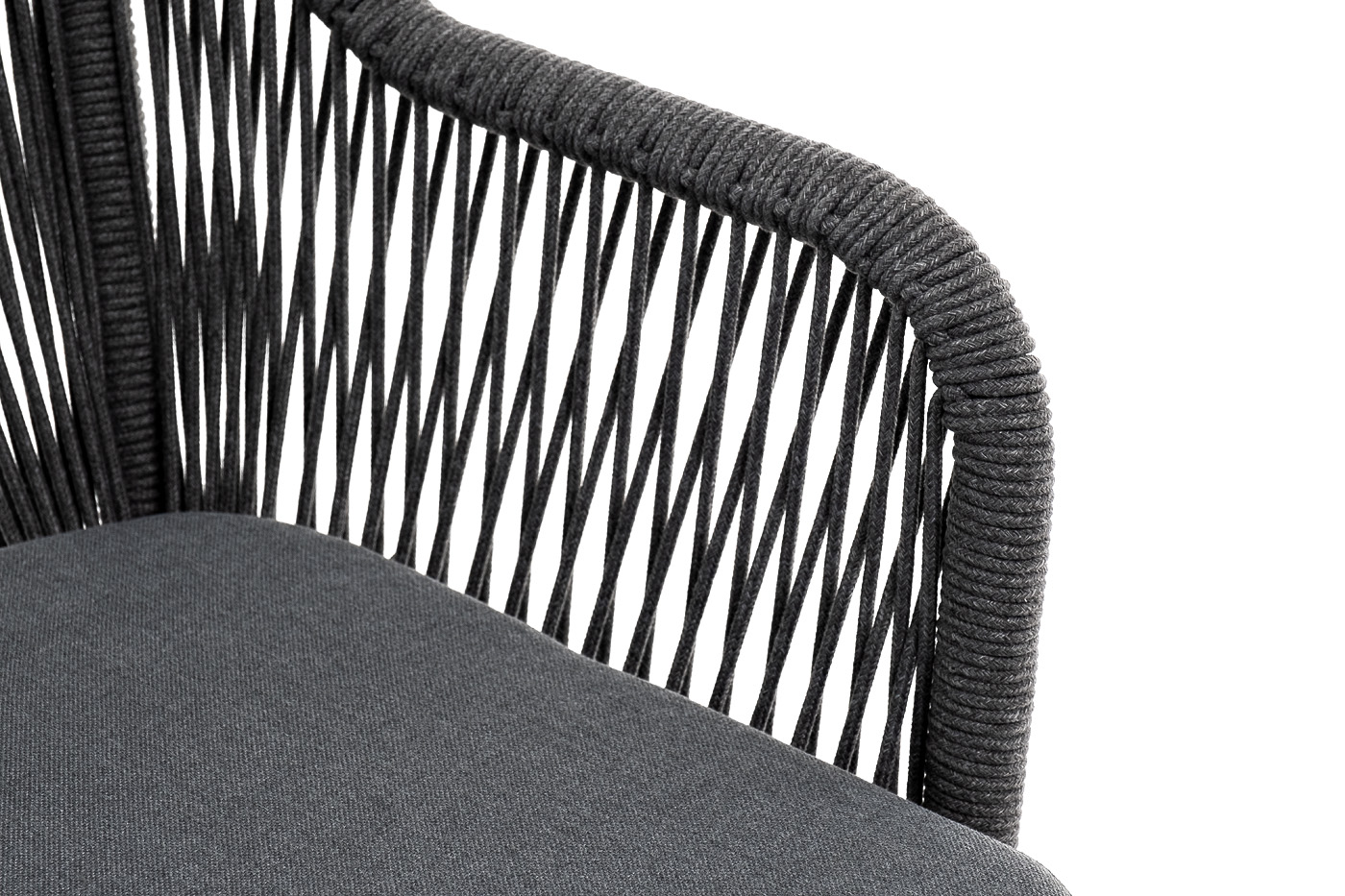 "Лион" стул плетеный из роупа, каркас из стали темно-серый (RAL7024) шагрень, роуп темно-серый круглый, ткань серая