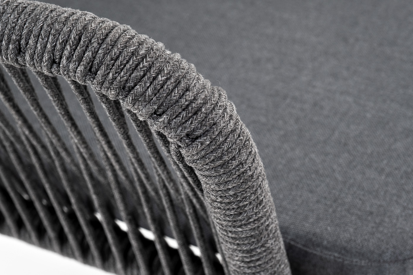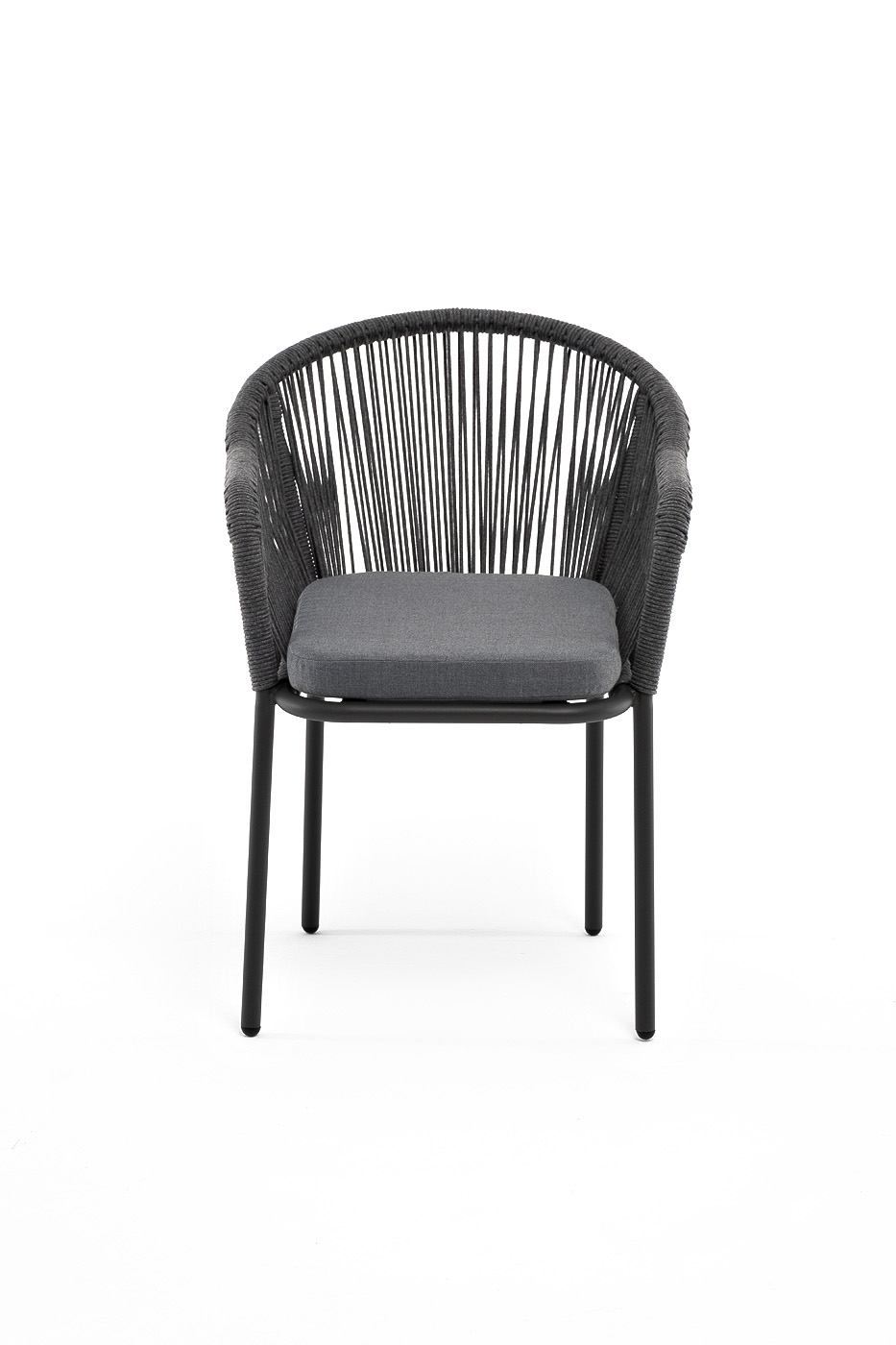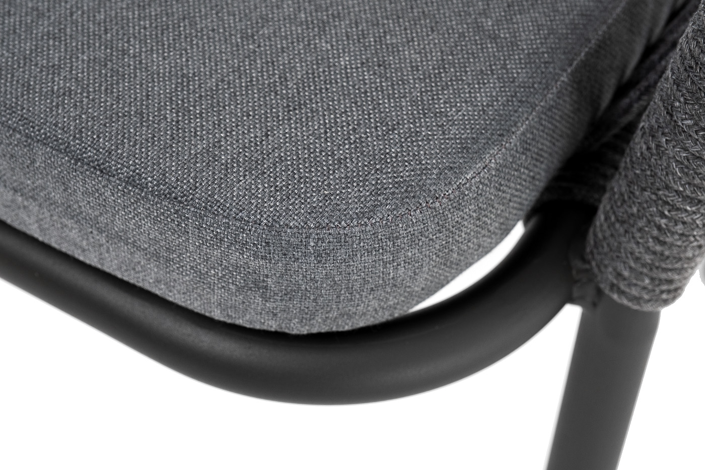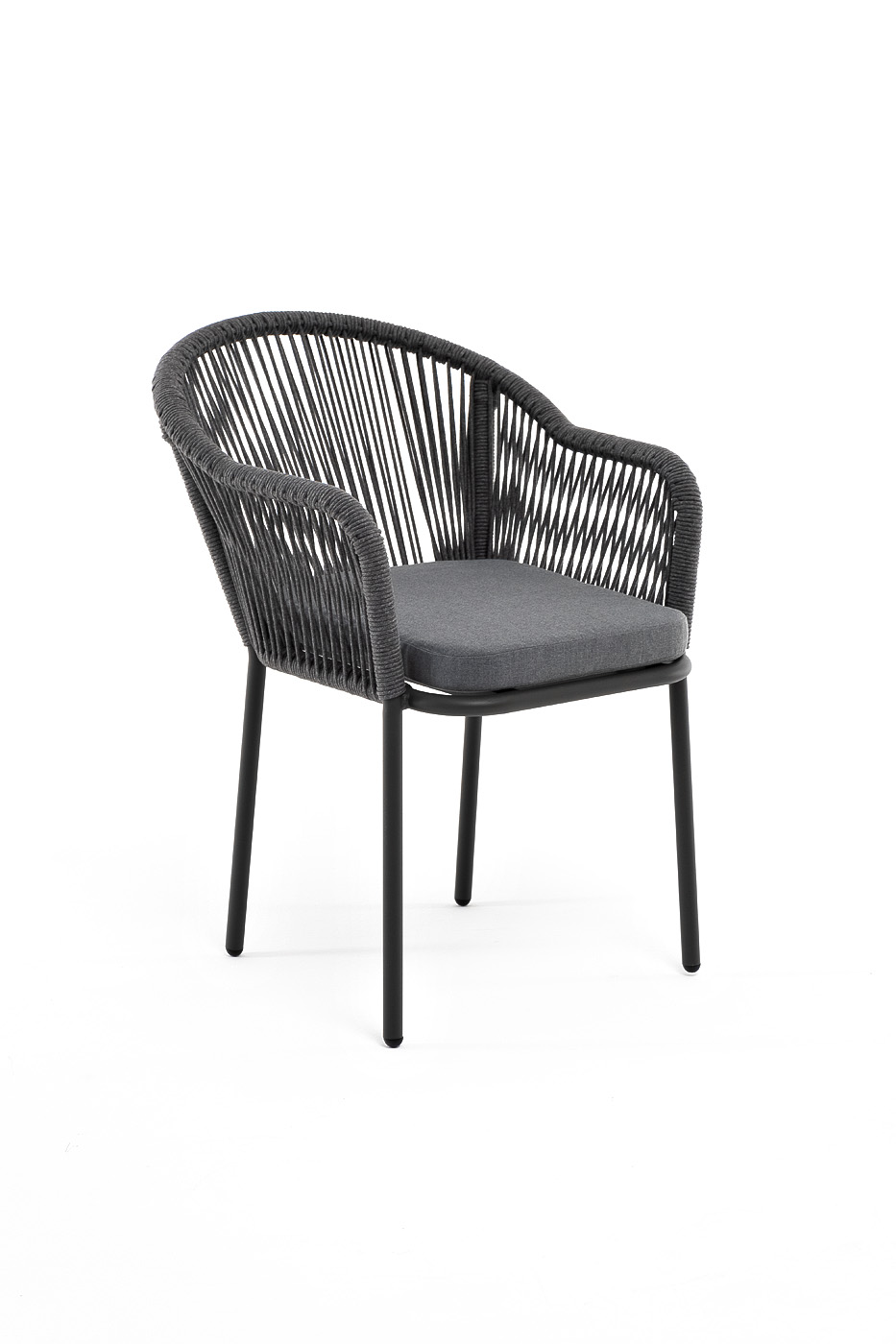 "Лион" стул плетеный из роупа, каркас из стали темно-серый (RAL7024) шагрень, роуп темно-серый круглый, ткань серая