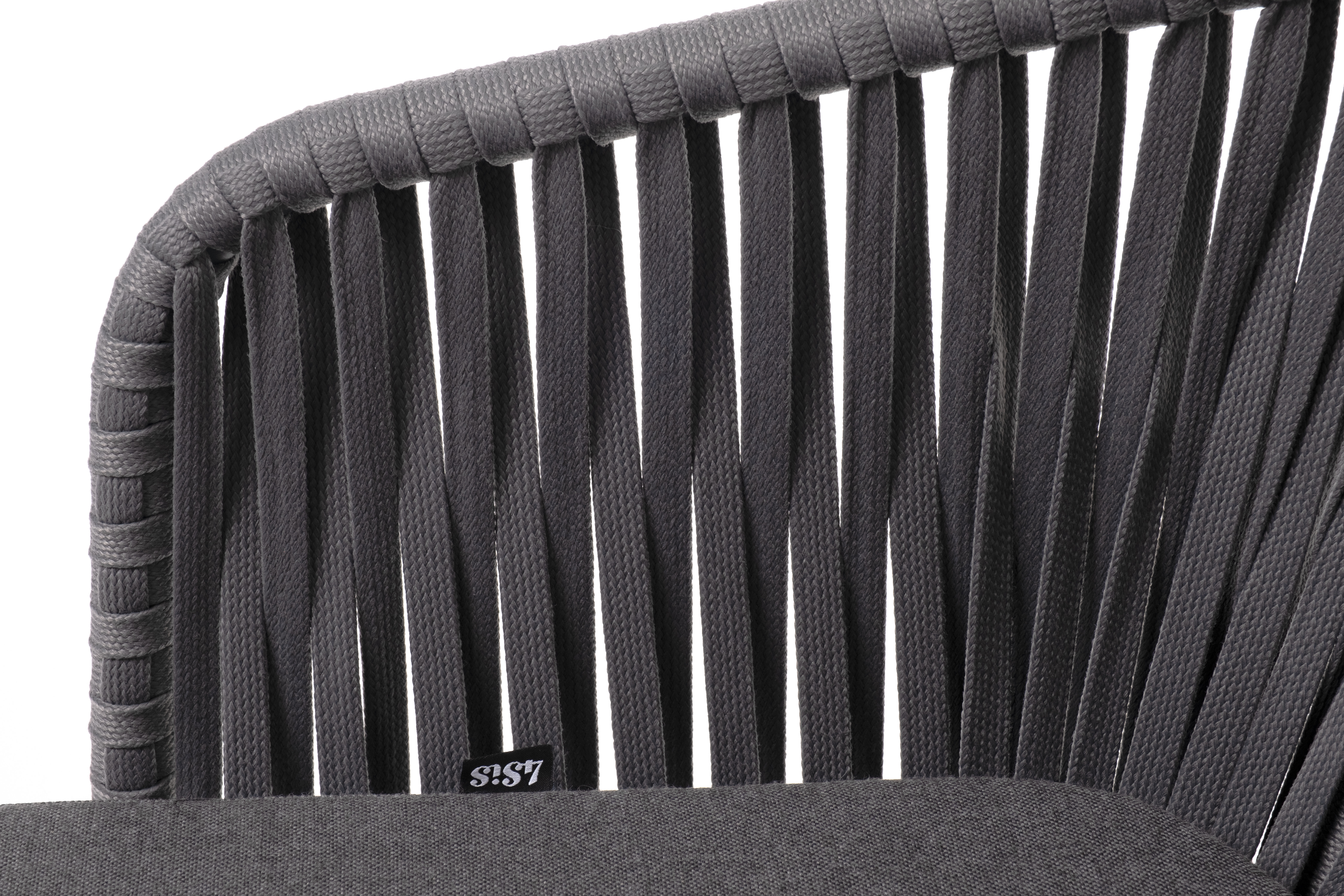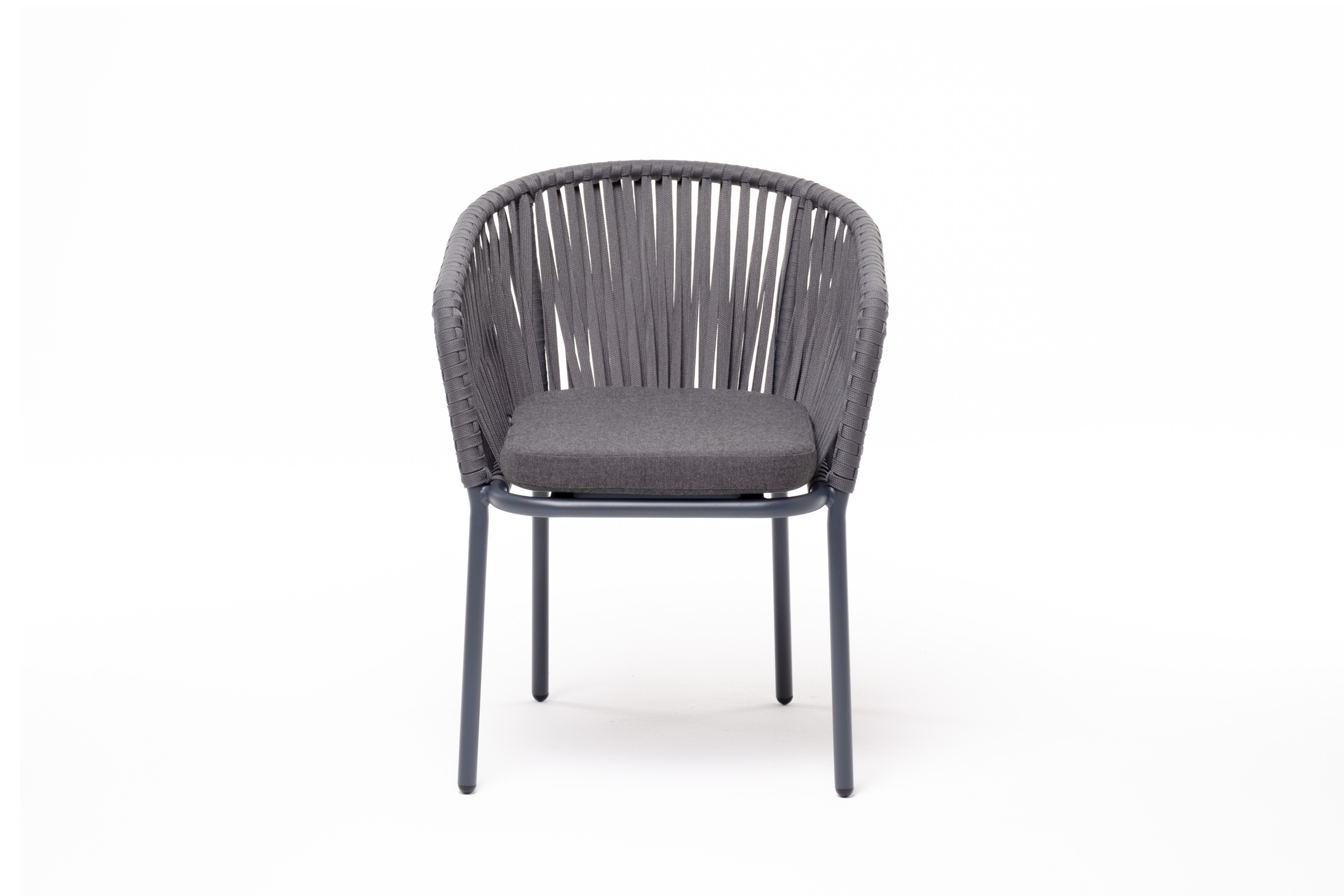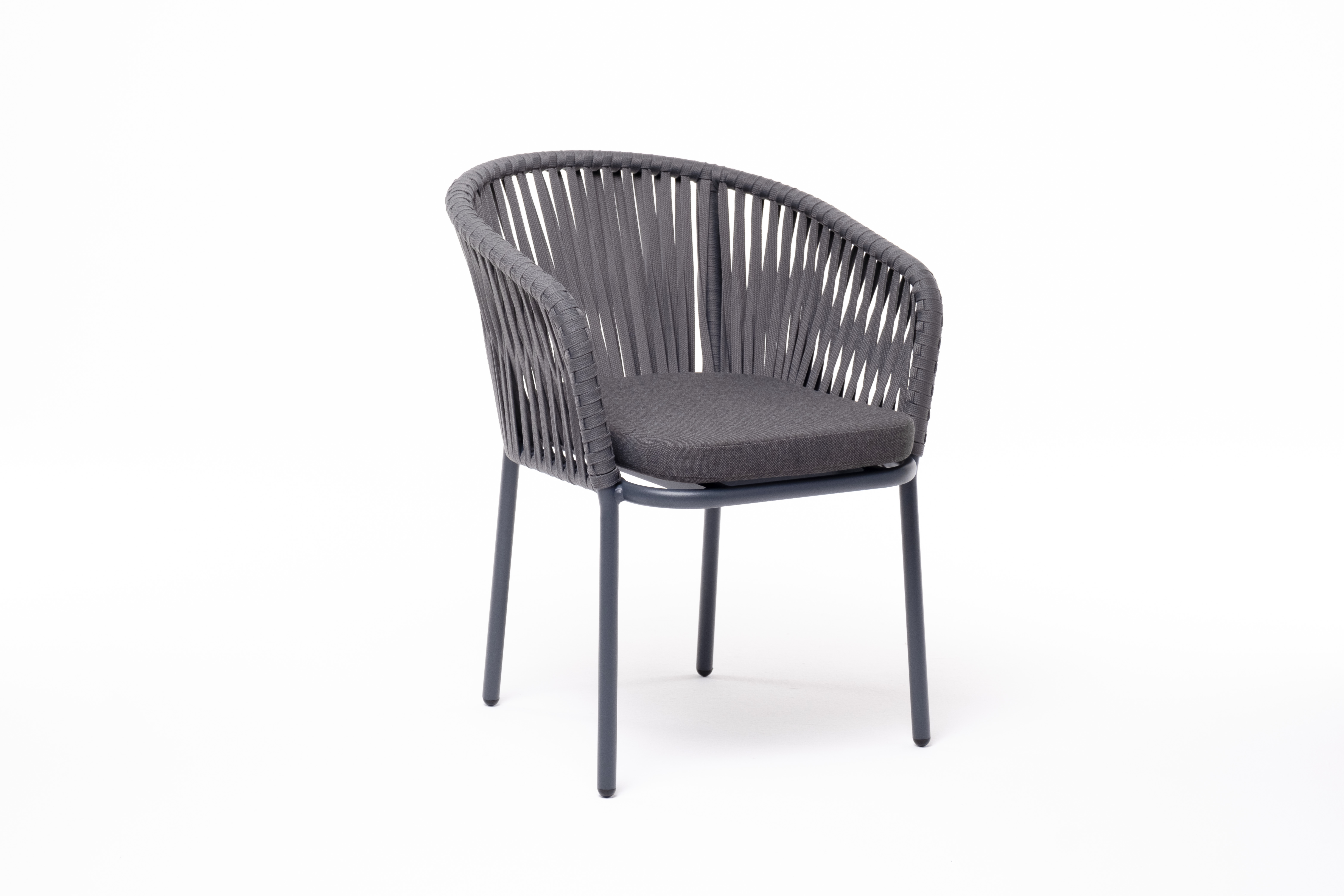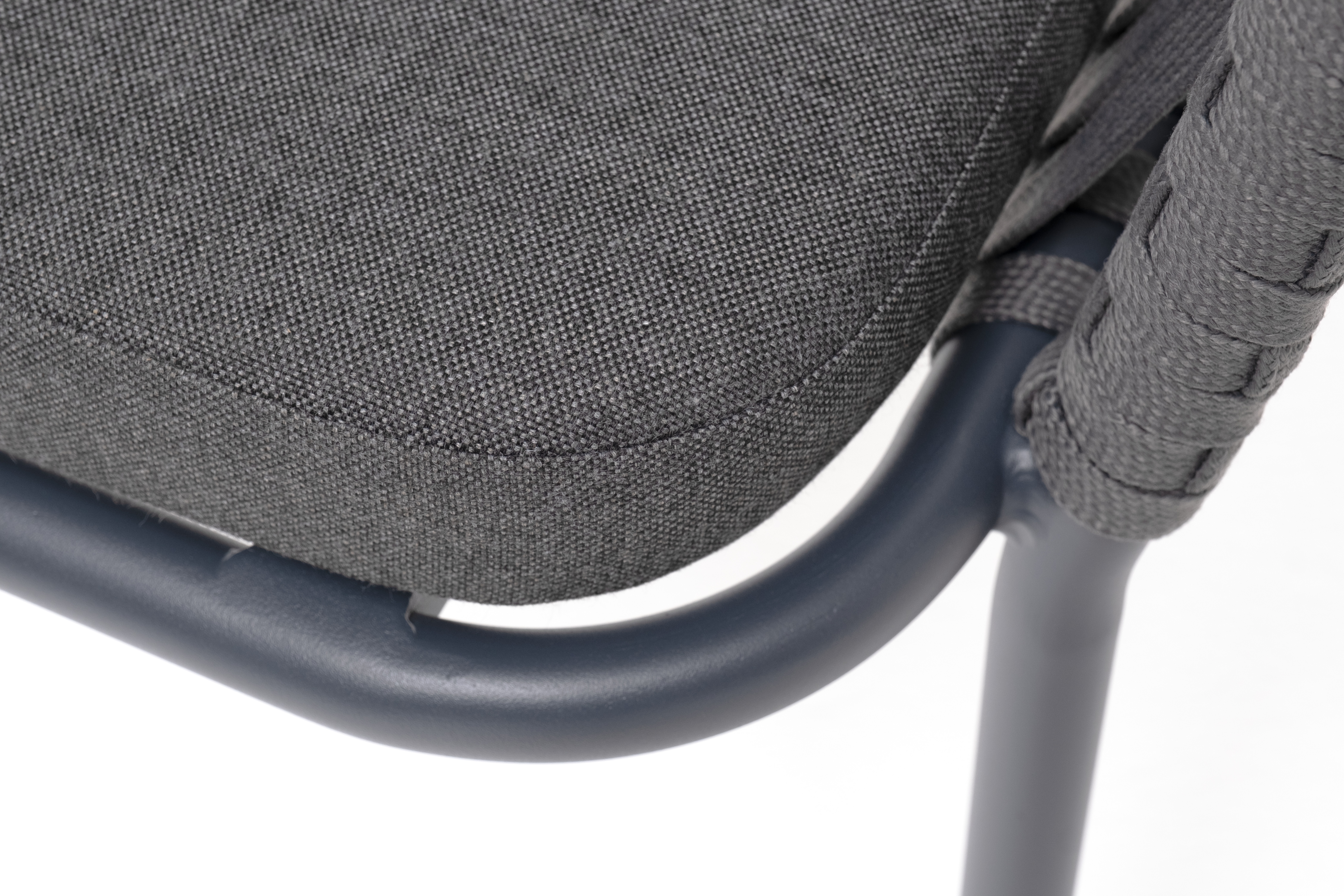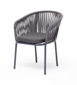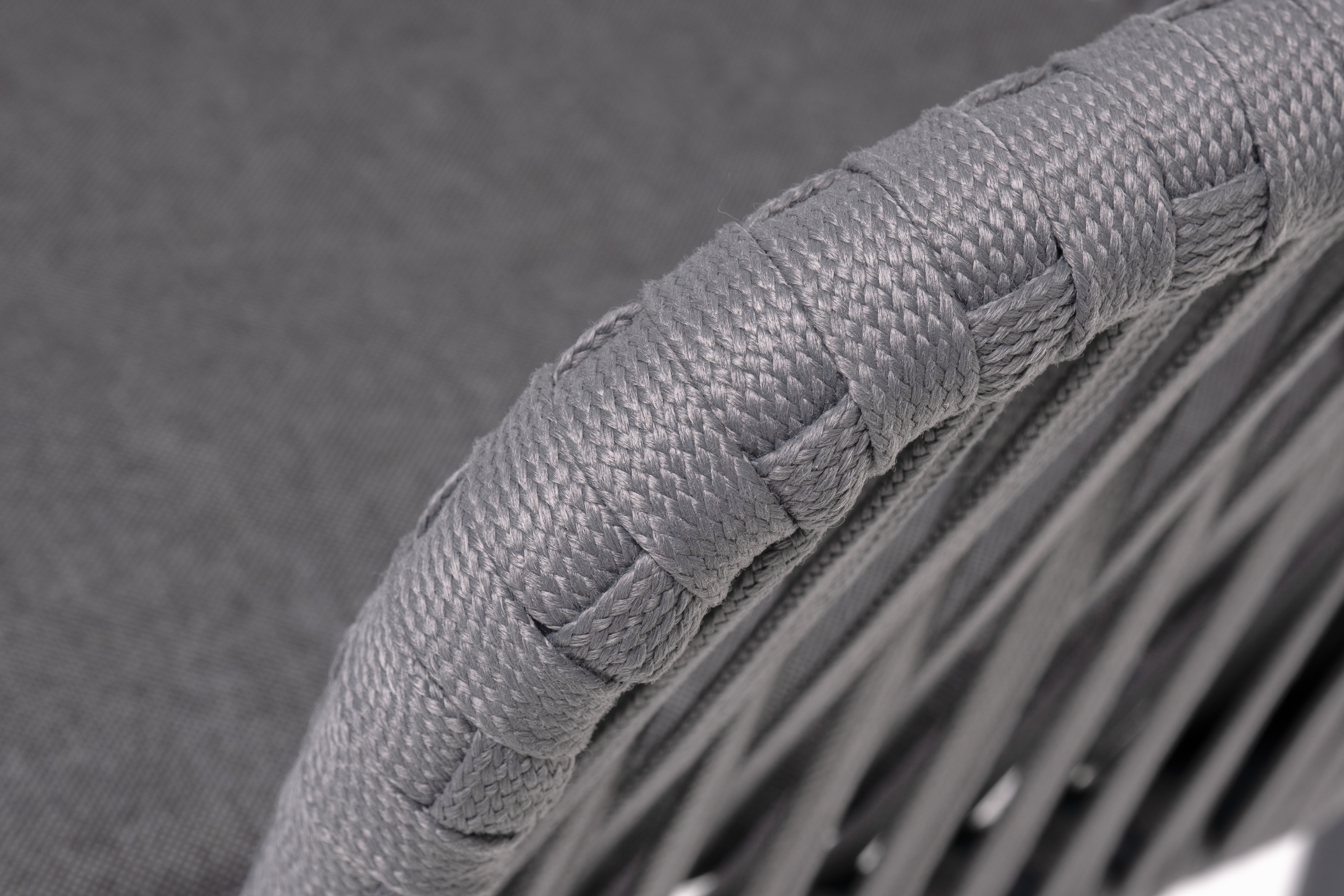 "Бордо" стул плетеный из роупа, каркас алюминий темно-серый (RAL7024) муар, роуп серый 15мм, ткань темно-серая 027