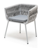 "Монако" стул плетеный из роупа, каркас алюминий светло-серый (RAL7035) муар, роуп светло-серый 40 мм, ткань светло-серая