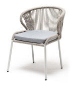 "Милан" стул плетеный из роупа, каркас алюминий светло-серый (RAL7035) муар, роуп серый меланж круглый, ткань светло-серая