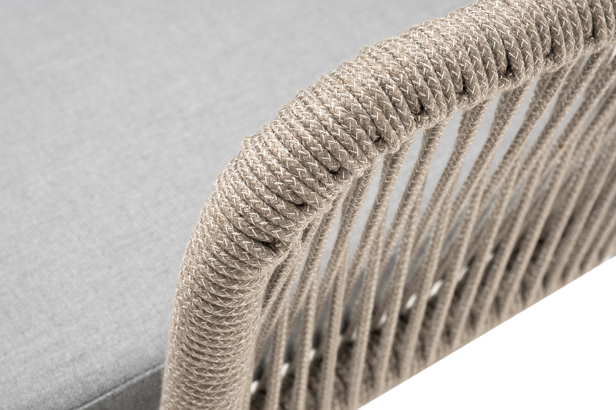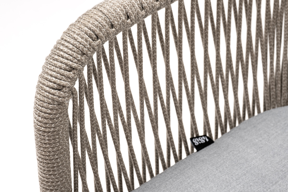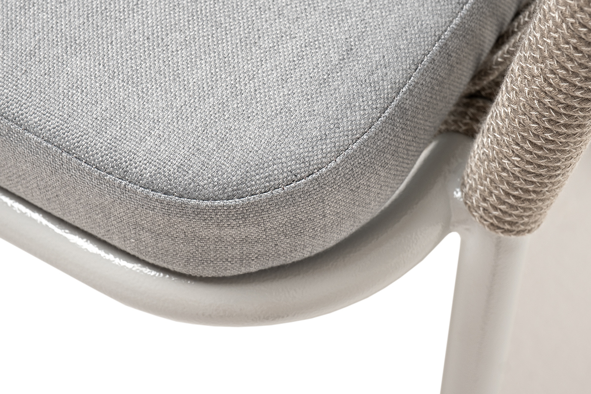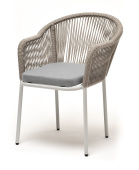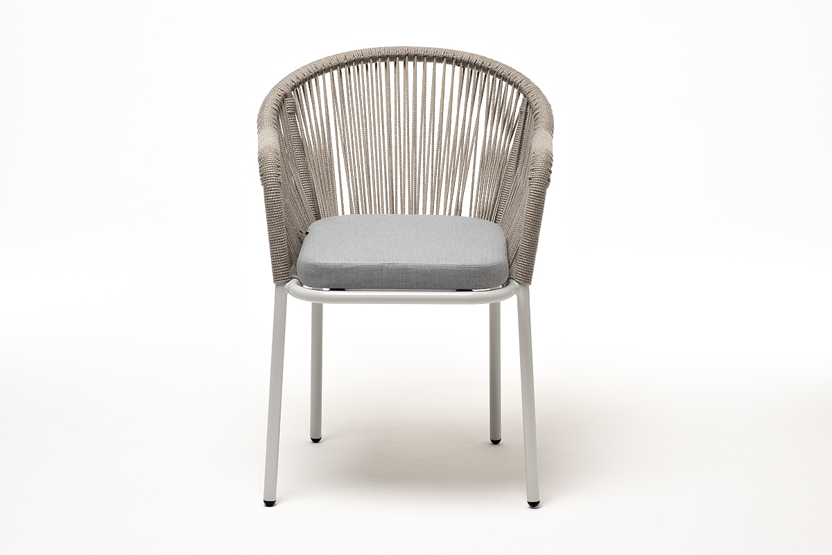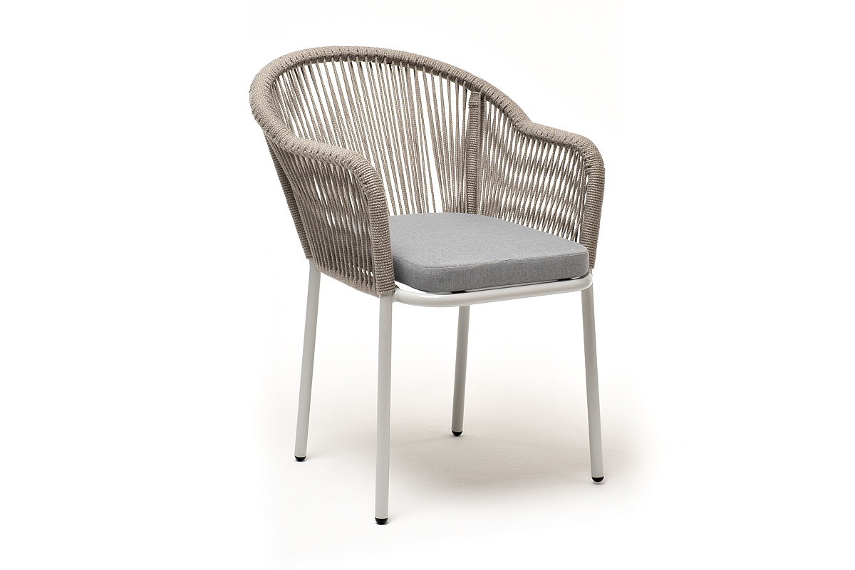 "Лион" стул плетеный из роупа, каркас из стали светло-серый (RAL7035) муар, роуп серый меланж круглый, ткань светло-серая