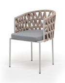 "Диего" стул плетеный из роупа, каркас из стали светло-серый (RAL7035) муар, роуп бежевый круглый, ткань светло-серая