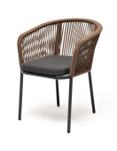 "Марсель" стул плетеный из роупа, каркас алюминий серый (RAL7022) шагрень, роуп коричневый круглый, ткань темно-серая 019