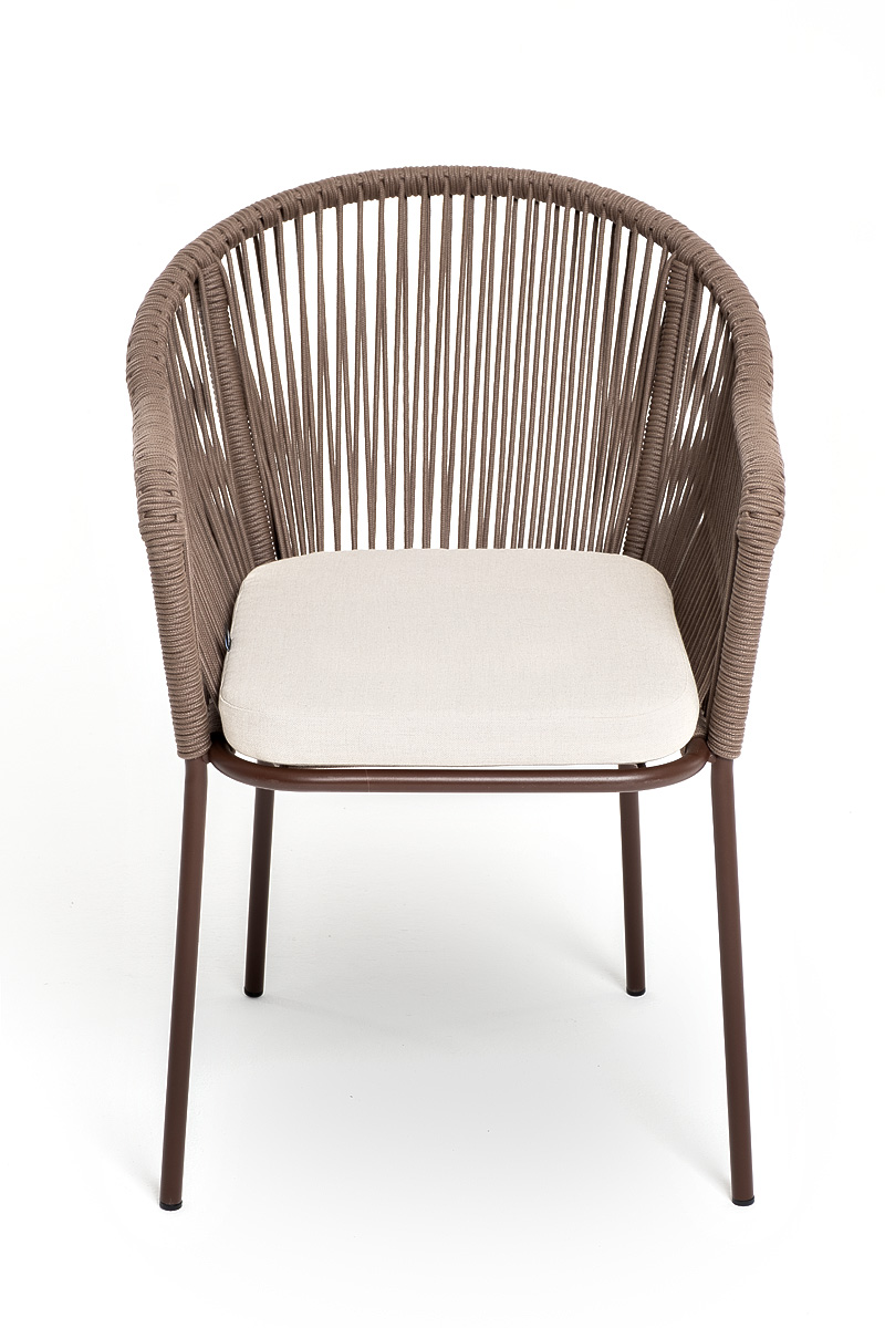 "Лион" стул плетеный из роупа, каркас из стали коричневый (RAL8016) муар, роуп коричневый круглый, ткань бежевая 15052
