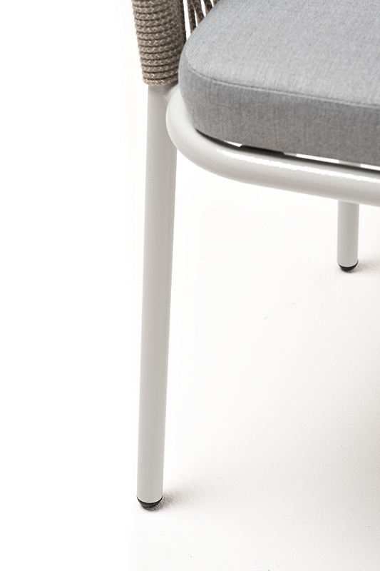 "Лион" стул плетеный из роупа, каркас алюминий светло-серый (RAL7035) муар, роуп серый меланж круглый, ткань светло-серая