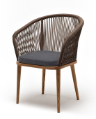 фото "марсель" стул плетеный из роупа, основание дуб, роуп коричневый круглый, ткань темно-серая 027