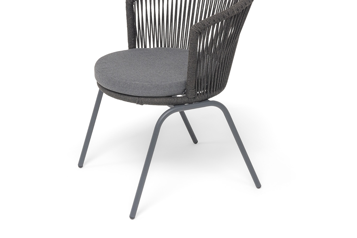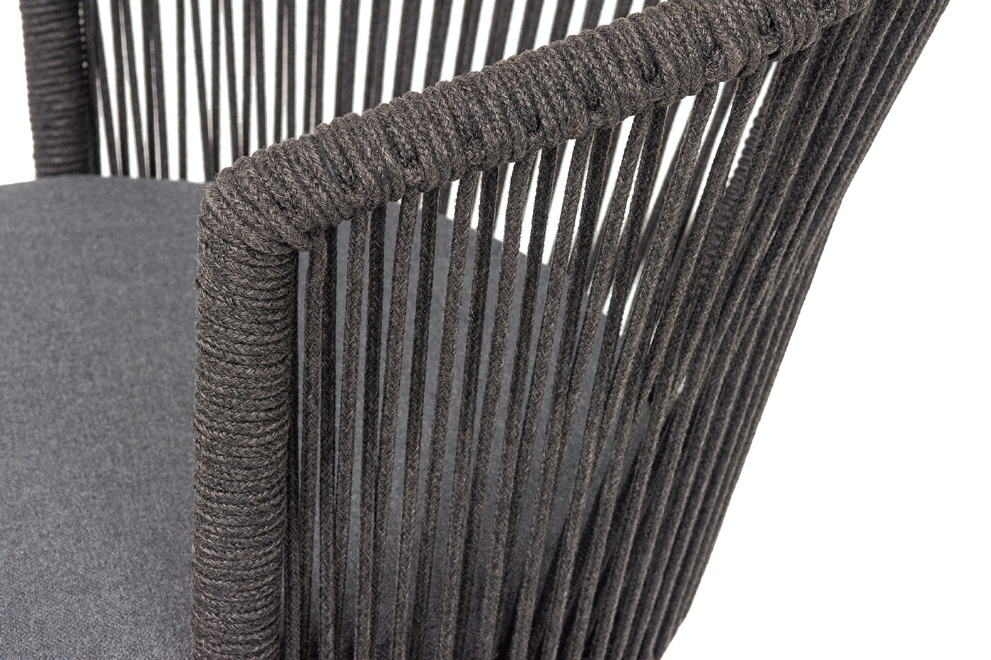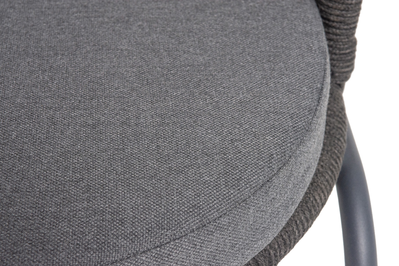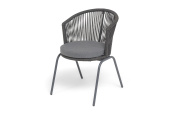 "Люксембург" стул плетеный из роупа, каркас из стали темно-серый (RAL7024) муар, роуп темно-серый круглый, ткань темно-серая 027
