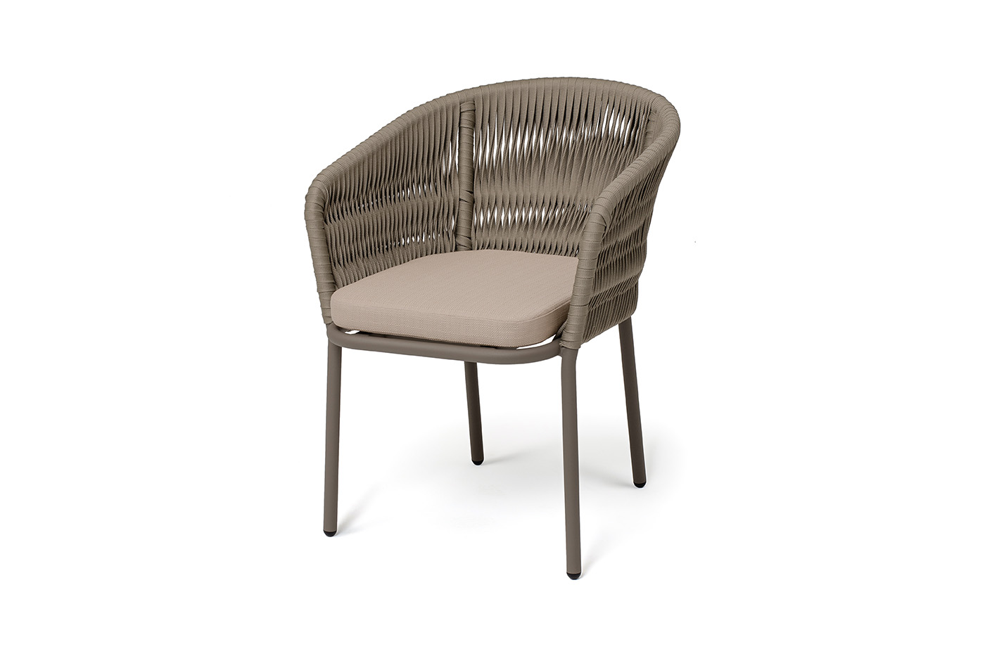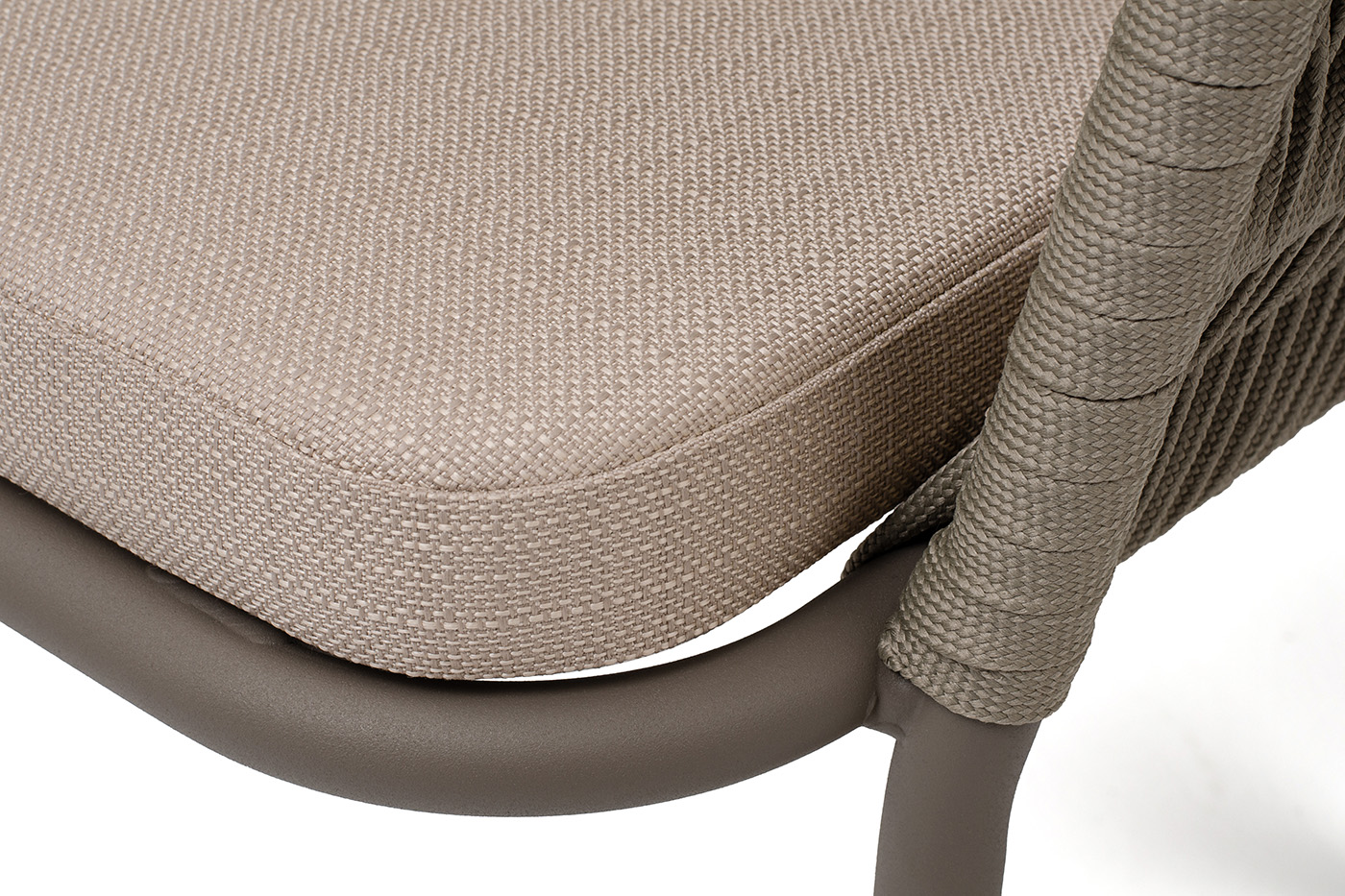 "Бордо" стул плетеный из роупа (колос), каркас алюминий серый (RAL7022) муар, роуп серый 15мм, ткань темно-серая 027