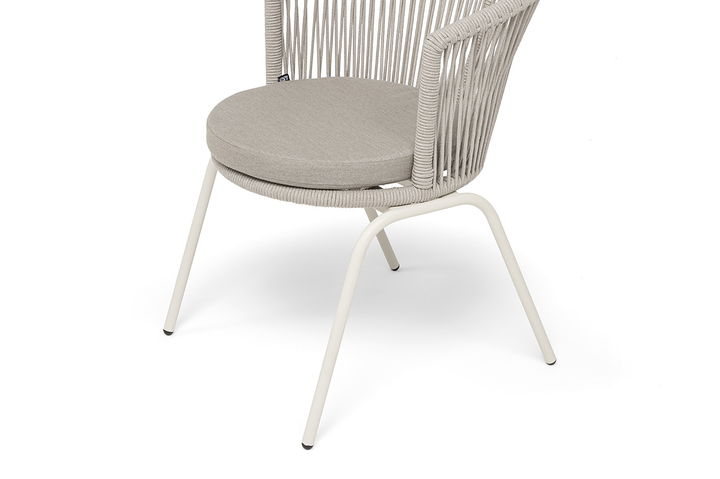 "Люксембург" стул плетеный из роупа, каркас из стали (RAL1013) муар, роуп бежевый круглый, ткань бежевая 15052