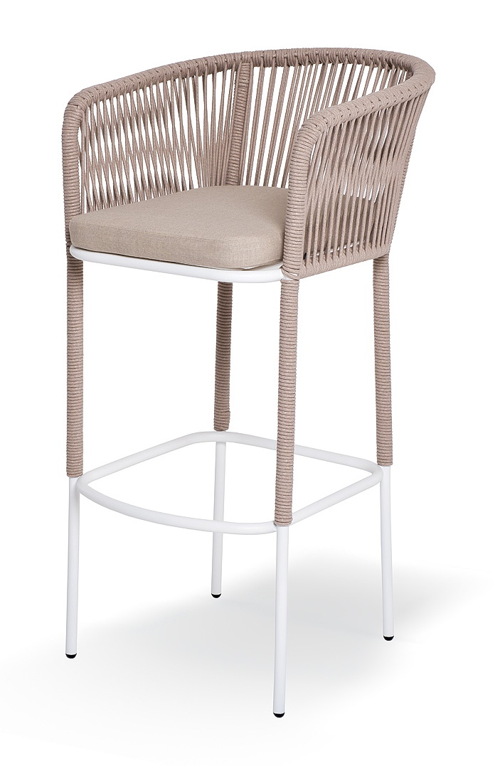 "Марсель" стул барный плетеный из роупа, каркас из стали светло-серый (RAL7035) муар, роуп бежевый круглый, ткань Mossle бежевая, пос.H65