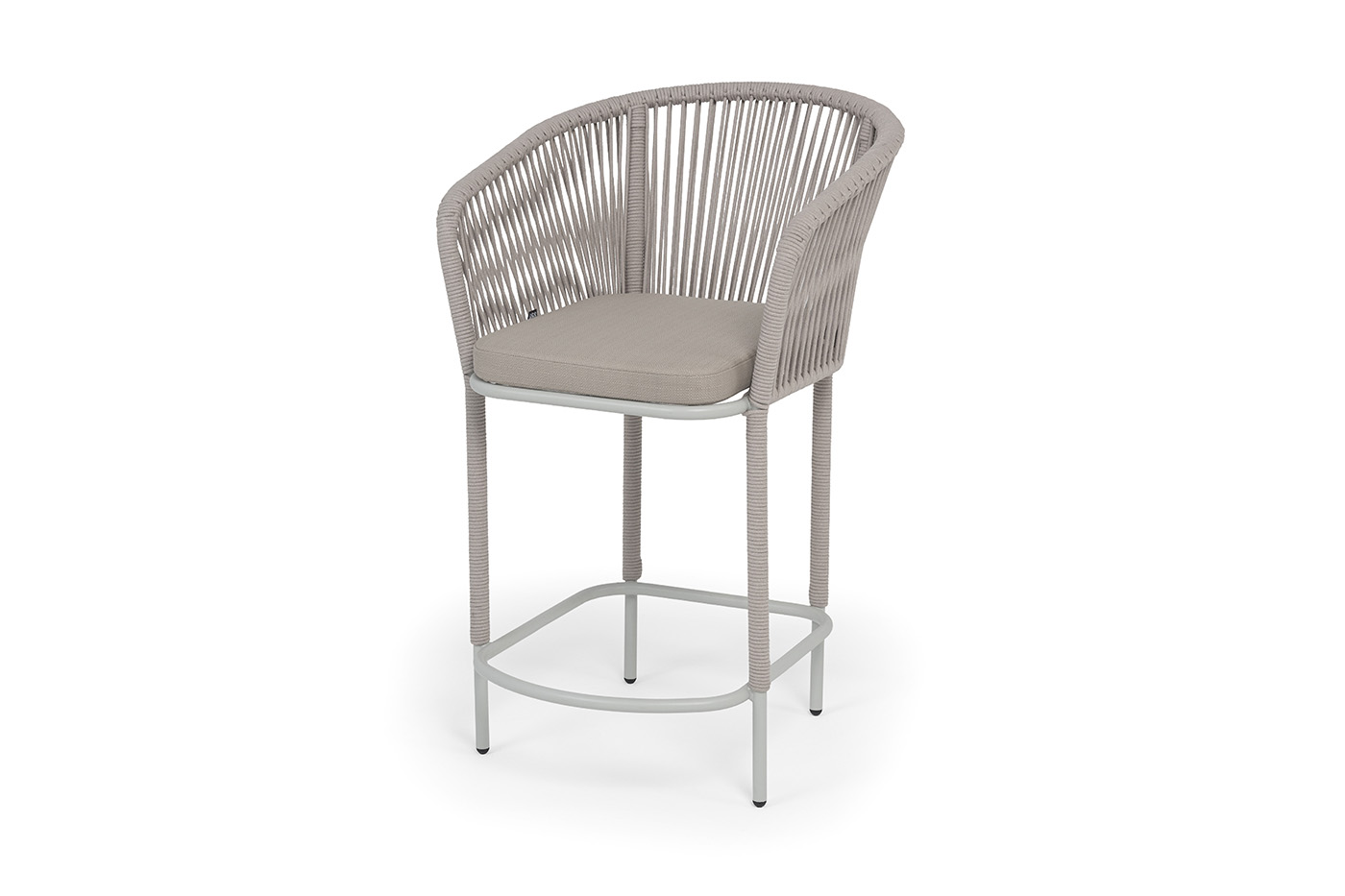 "Марсель" стул полубарный плетеный из роупа, каркас из стали светло-серый (RAL7035) муар, роуп бежевый круглый, ткань Mossle бежевая, пос.H65