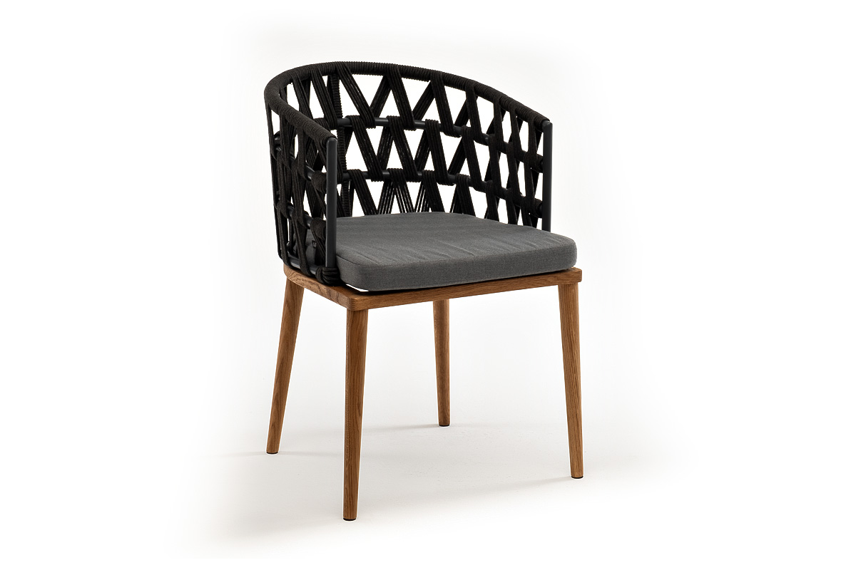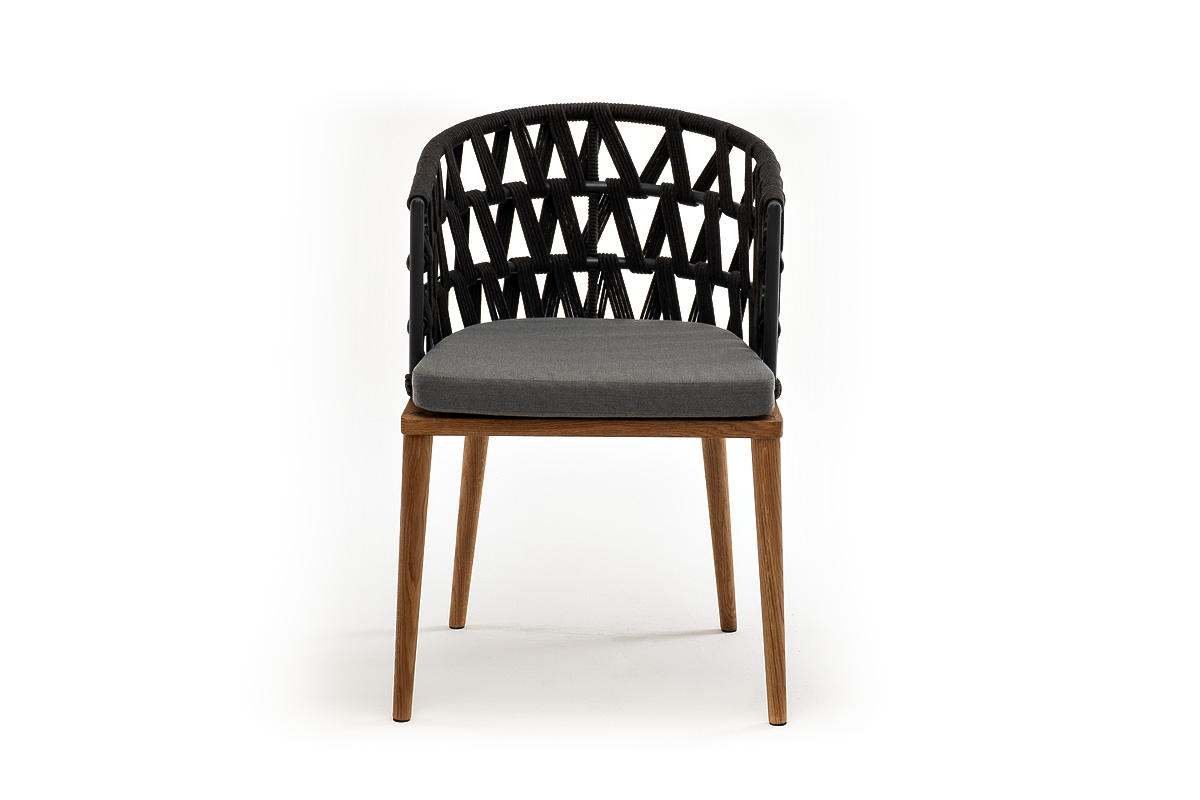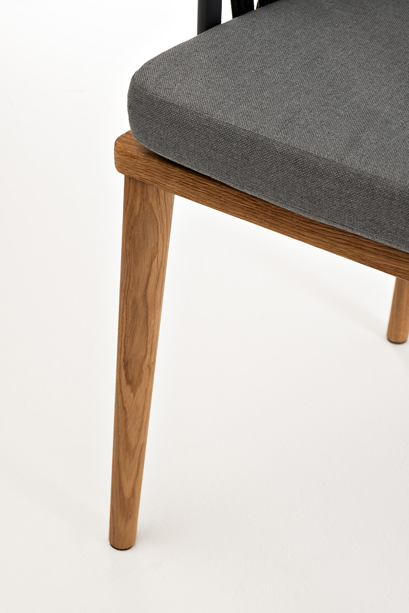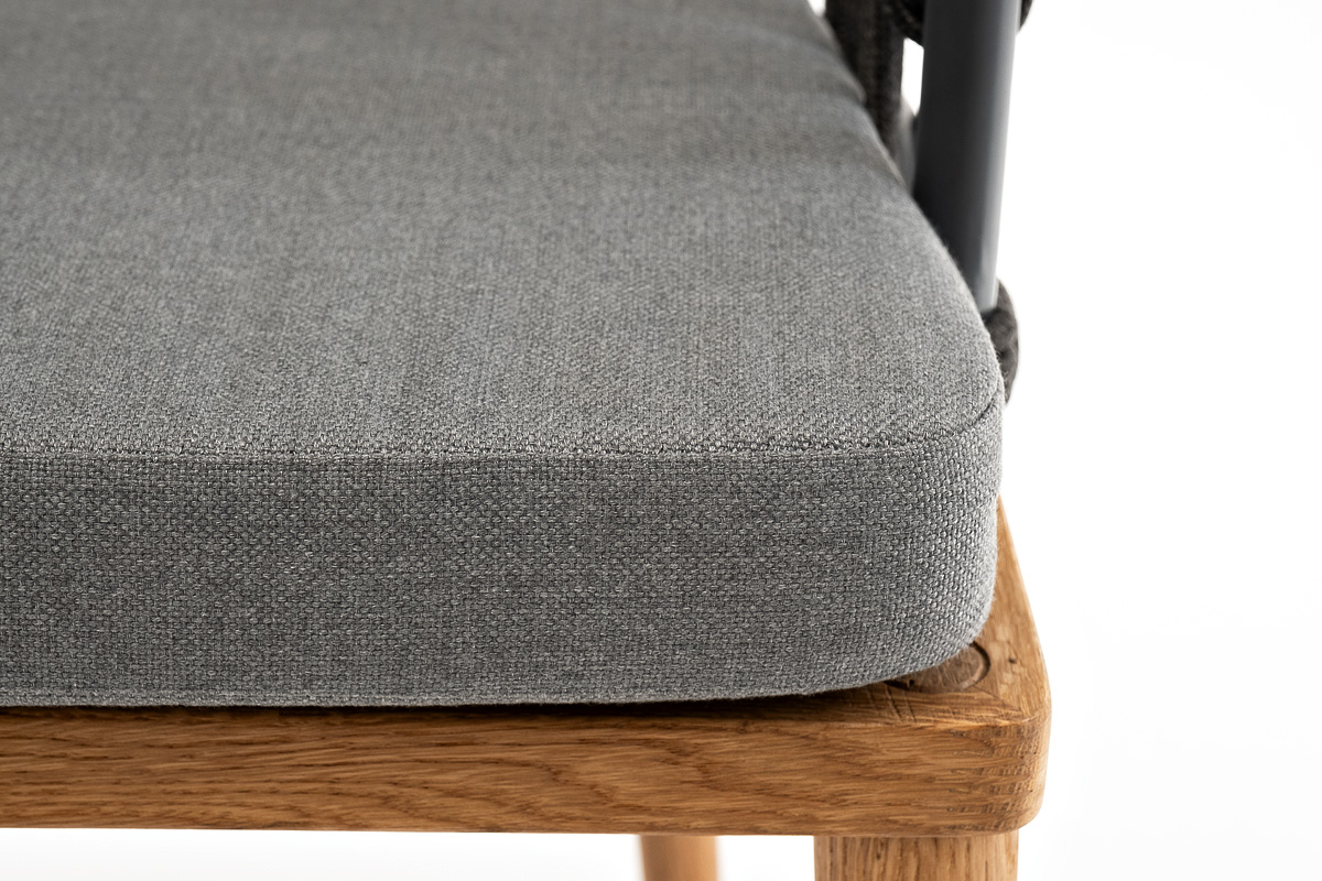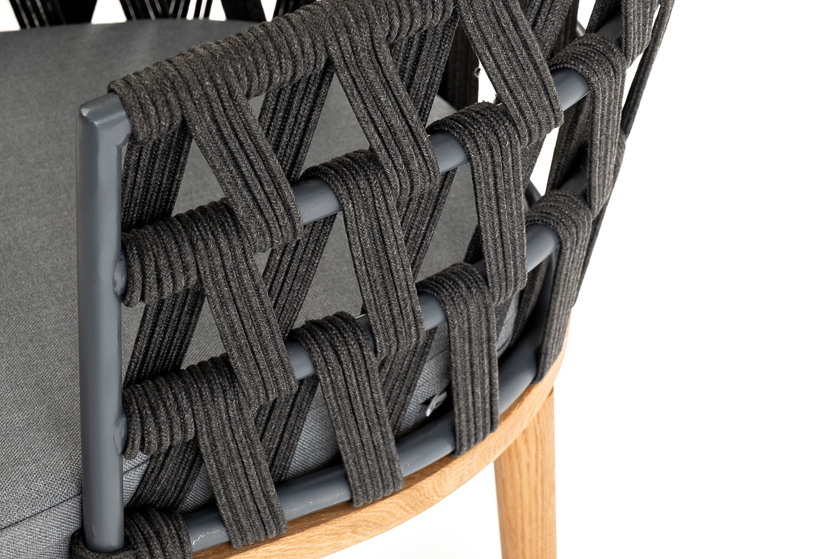 "Диего" стул плетеный из роупа, основание дуб, роуп темно-серый круглый, ткань серая
