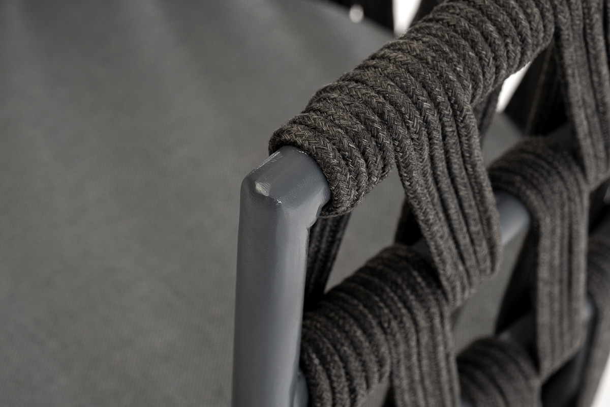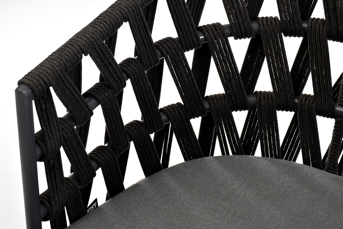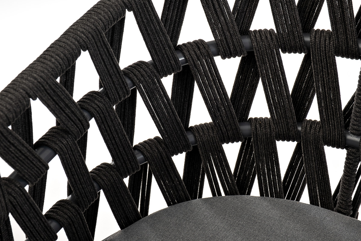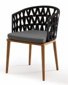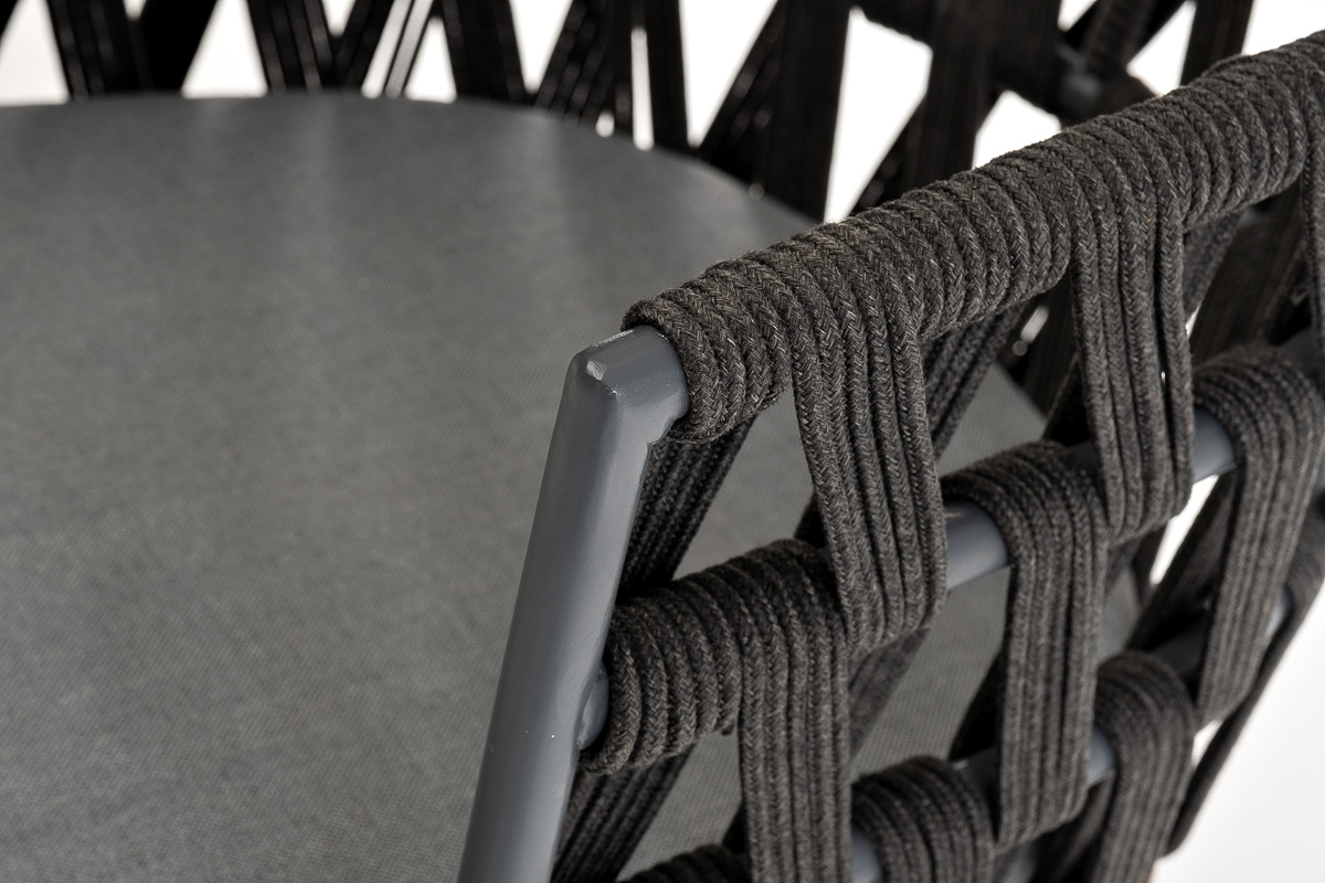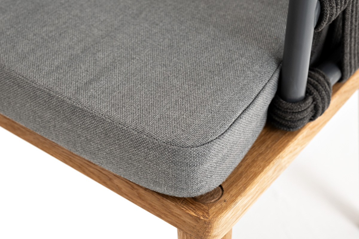 "Диего" стул плетеный из роупа, основание дуб, роуп темно-серый круглый, ткань серая
