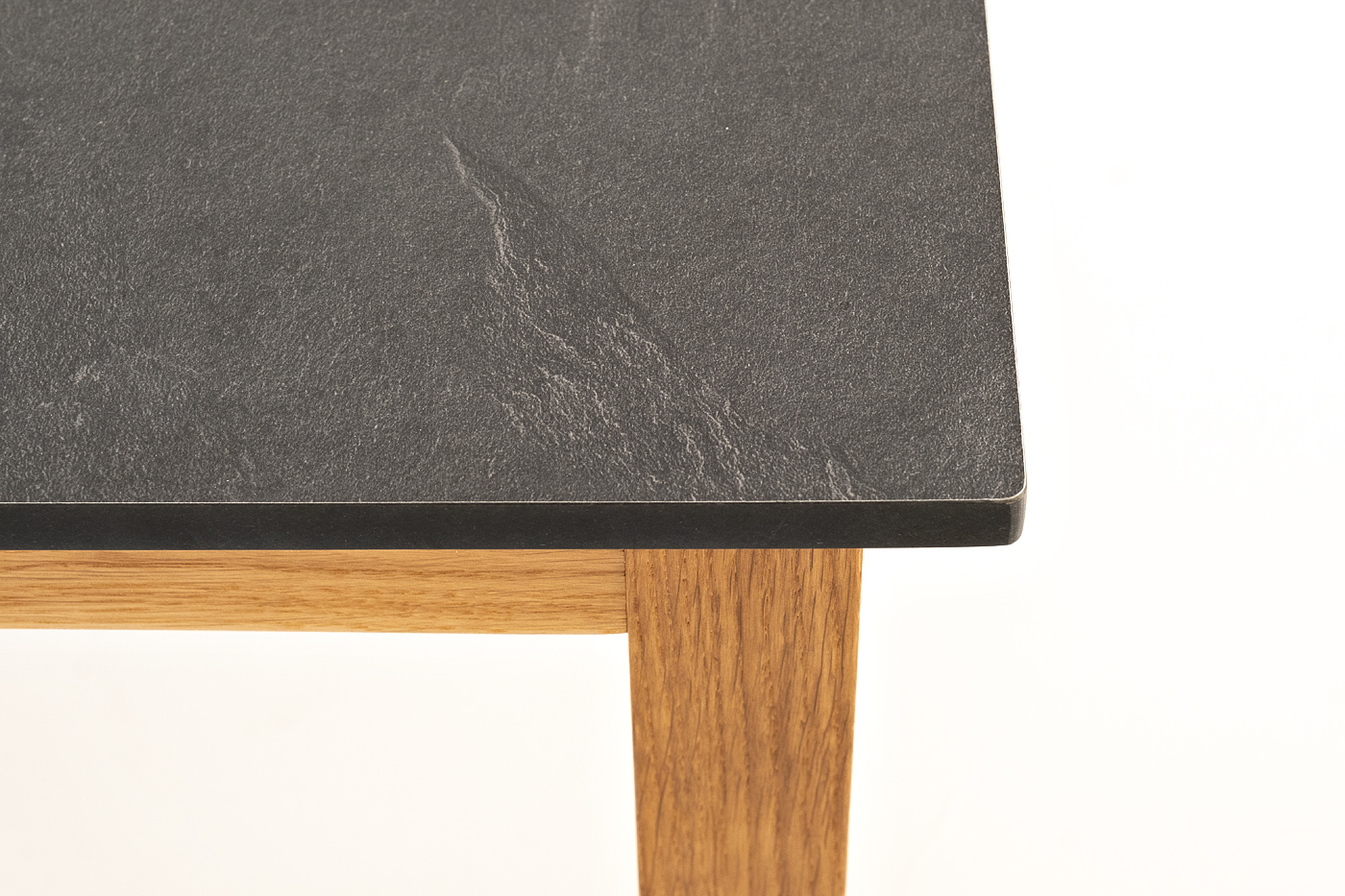 Основание журнального столика - дуб. Столешница - из высококачественного монолитного компакт-пластик HPL, цвет «серый гранит». Устойчив к царапинам и другим механическим повреждениям, что позволяет сохранить внешний вид стола на долгое время.