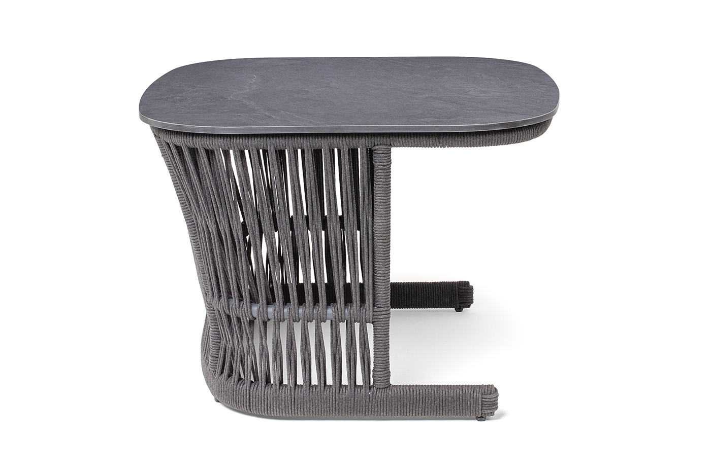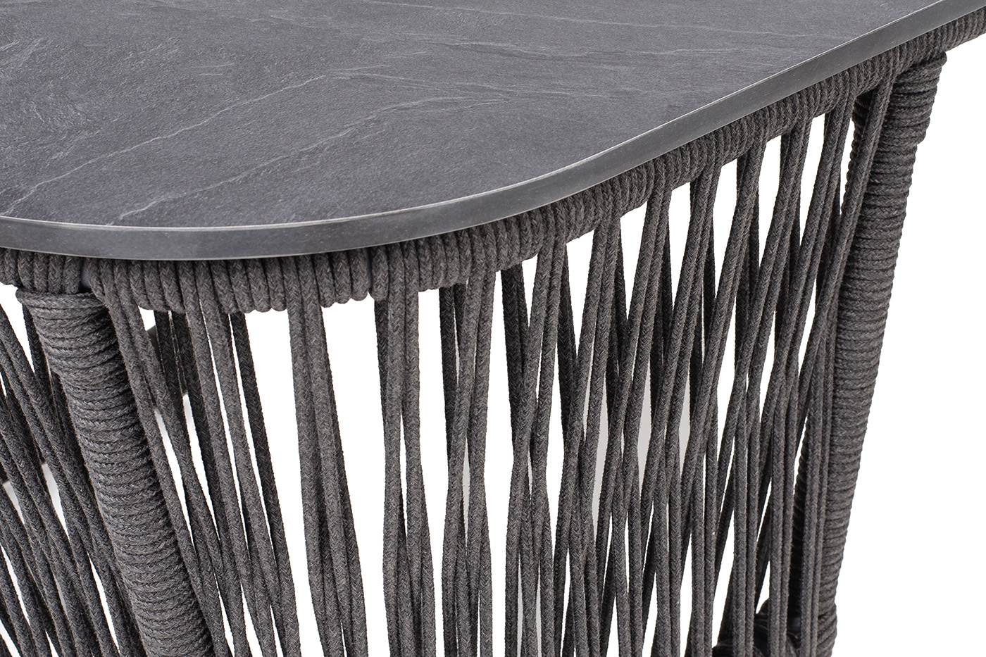 Подстолье - алюминиевая профильная труба, окрашенная износостойкой краской в темно-серый цвет. Нижняя часть задекорирована эластичными синтетическими лентами, состоящими из высокопрочных полиэфирных волокон, аналогичного оттенка.
