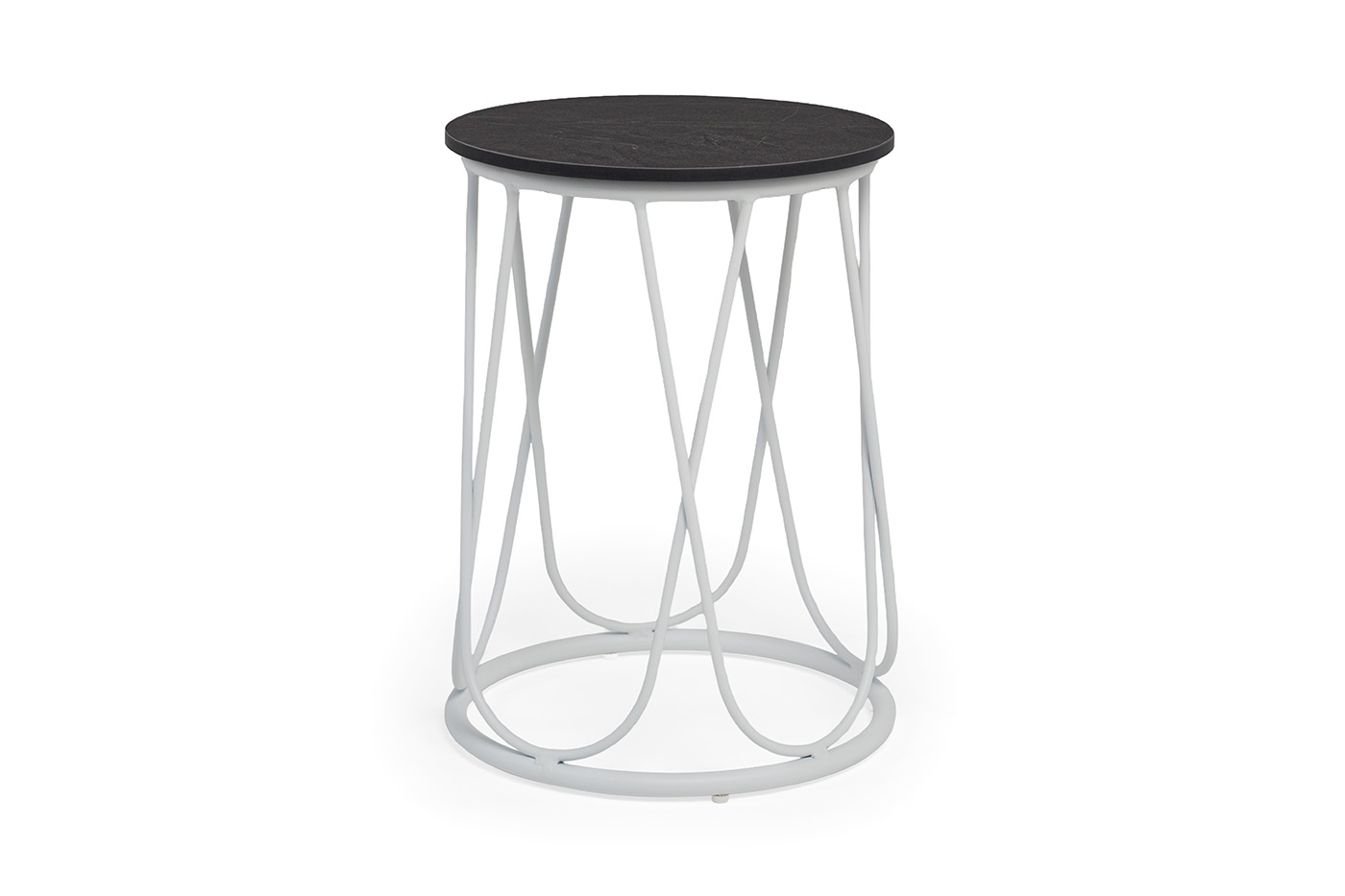 "Перу" журнальный стол из HPL круглый Ø40 H55, каркас из алюминия белый (RAL 9016) муар, цвет столешницы "серый мрамор"
