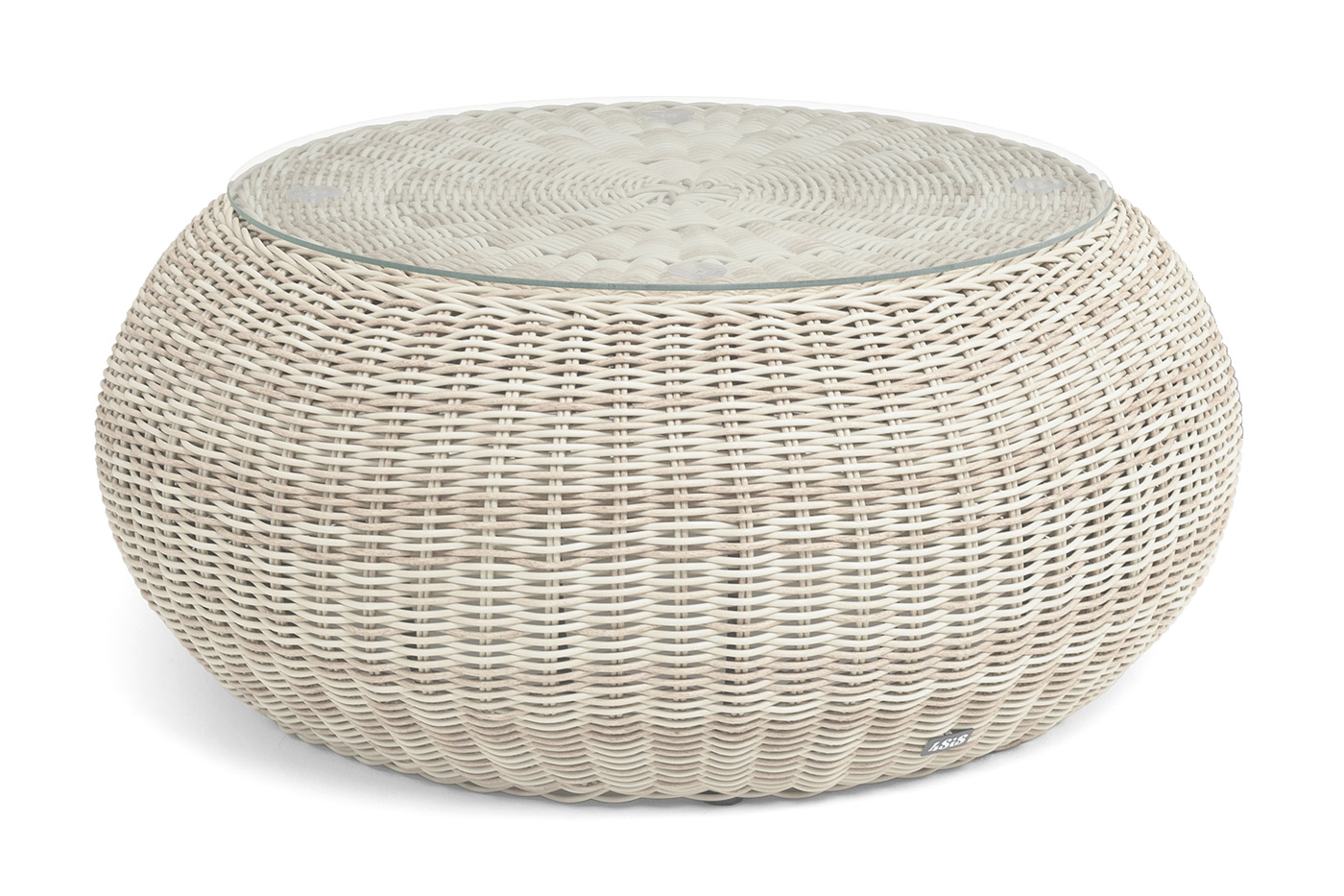 Каркас столика изготовлен из алюминия, вручную оплетенного круглым искусственным ротангом.