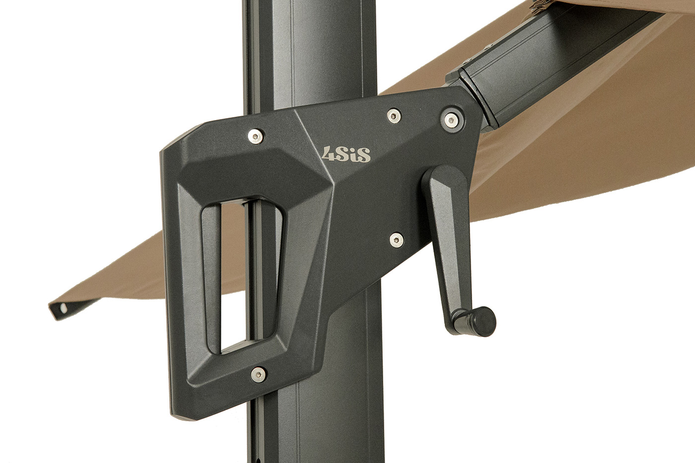 Зонт оснащен механизмом открытия купола, рукояткой с автоблокировкой и вращающимся механизмом на 360°.